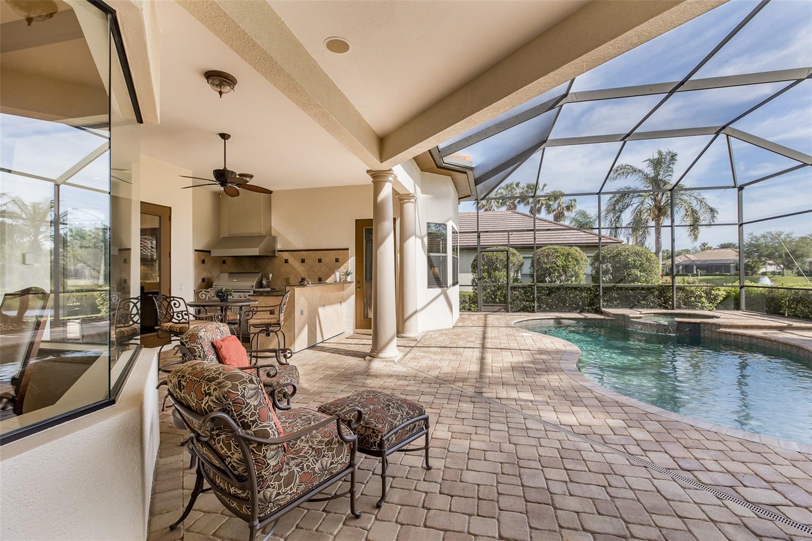 Upstairs, a massive bonus room - or fourth bedroom - offers two walk-in closets and a private en suite bath, providing the perfect retreat for guests, in-laws, or a sophisticated home office. Step outside to the expansive screened lanai - an entertainer’s dream. Three covered spaces invite alfresco dining and lounging, while the summer kitchen and outdoor fireplace make every gathering an event. Enjoy a heated saltwater pool with breathtaking pond views, offering year-round resort-style relaxation in complete privacy. 4 Bedrooms | 4.5 Bathrooms | Home Theatre | Heated Saltwater Pool | Summer Kitchen | Golf Course Community. This is not simply a home — it is a lifestyle. Champions Club is a private gated community featuring a private clubhouse, Resort-style pool & spa, Fitness Center, Tennis, Pickle ball, Basketball & many planned activities for all ages throughout the year. Zoned for A+ rated schools, Trinity Elementary, Seven Springs Middle & J.W. Mitchell High. Conveniently located close to many shops, restaurants, medical facilities, SunCoast Pkwy & short drive to many local beaches, Tampa International Airport & St. Pete/Clearwater Airport! One of Tampa Bay's Premier Communities with so much to offer its residents!