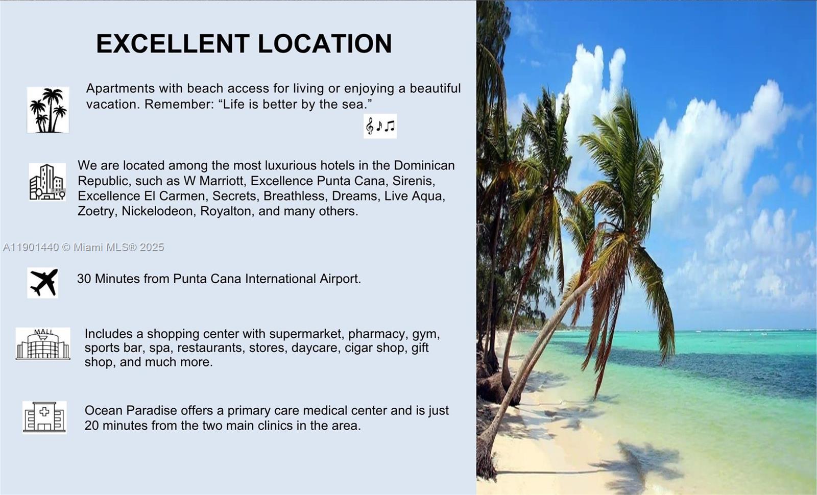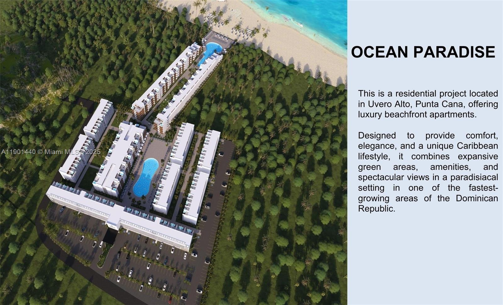 Discover your dream vacation community with stunning ocean views. This Pre-construction beach community will be a great investment in a truly gorgeous and accessible caribbean island with high rental ROI's and a resort like community you will love. Investment properties that will change your life. Ocean Paradise Beach Condos is a thoughtfully planned, gated community featuring 468 luxury condominium units across Blocks A–J, and 64 mixed-use units in Block G, which includes commercial spaces, a full-service spa, fitness center, daycare, and more. The community is anchored by stunning oceanfront amenities, lush landscaping, multiple pools, and a walkable layout that promotes a vibrant and serene lifestyle.