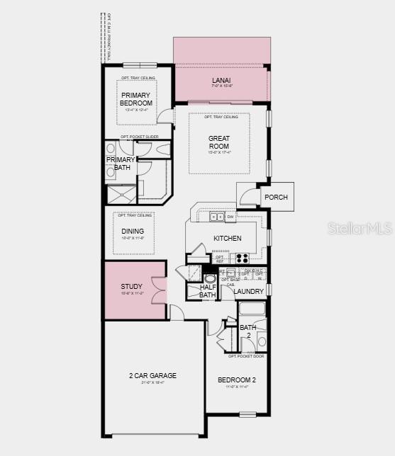 The Kona is a beautifully designed Twin Villa home with an open-concept layout that makes everyday living effortless. The elegant primary suite offers a peaceful retreat with a spacious walk-in closet, dual-sink vanity, expansive shower, and private commode. A secondary bedroom with an ensuite bath sits at the front of the home, providing privacy for guests. At the heart of the home, the great room, designer kitchen, and dining area come together in a bright and inviting space—perfect for gathering. A side entryway welcomes you inside, while an extended lanai invites you to enjoy the Florida sunshine outdoors. Structural options added include: glass French doors into the study, extended lanai, and 8ft interior doors.