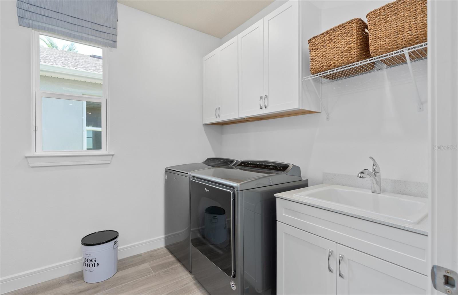 Step into the Stardom Model Home by Pulte! Originally a model home, this stunning one-story 3-bedroom, 2.5-bathroom, an open flex room, and 3-car garage masterpiece boasts a pool and spa situated on a homesite with no rear neighbors, a privacy wall at the rear of the home, and black aluminum fencing–offering both privacy and beauty. The open concept living area flows effortlessly, combining the kitchen, café, and gathering room into one expansive space that feels airy and inviting. The gourmet kitchen is a true focal point, featuring KitchenAid appliances, including a natural gas cooktop, double oven, full-size refrigerator, and beverage fridge. Soft-close cabinetry, a wood canopy hood, herringbone tile backsplash, quartz countertops, and under-cabinet lighting add the perfect blend of style and convenience. Soaring tall ceilings, 8’ Cheyenne-style interior doors, crown molding, and a luxurious double tray ceiling elevate the entire area, adding a sense of grandeur while maintaining an intimate, welcoming atmosphere perfect for entertaining. The pocket sliding glass doors, which connect the living area to the covered lanai, flood the home with natural light, creating a bright, vibrant environment that brings the outdoors in. Step outside into your private outdoor retreat. This exceptional backyard features a fully appointed outdoor kitchen, an elegant covered lanai, a pristine swimming pool, and a luxurious spa. The private Owner’s Suite, located at the back corner of the home for ultimate privacy, offers a tranquil retreat with a spa-inspired en suite bathroom, oversized walk-in closet, linen closet, zero-entry walk-in shower with built-in bench, and enclosed toilet. The Stardom also features two spare bedrooms located in the opposite back corner of the home, allowing privacy for everyone, and an open flex room at the front of the home- perfect for a sitting room or home office. The laundry room makes daily tasks a breeze, offering the convenience of built-in cabinetry, a quartz trimmed utility sink, and brand-new Whirlpool washer and dryer. The 3-car garage complete with an epoxy finished floor provides plenty of space for vehicles, storage, or hobbies. Don't miss out on your chance to own one of the best homes in the neighborhood! Schedule a tour today!