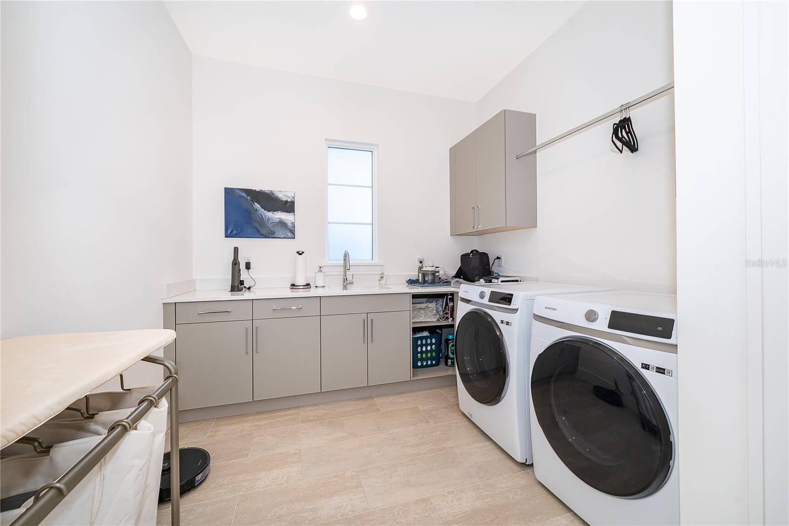 The indoor living flows effortlessly to the outdoor oasis through retractable glass doors. The electric-screened lanai features a complete summer kitchen with grill, refrigerator, and sink—an entertainer’s dream. Enjoy Florida living year-round overlooking the serene, professionally landscaped property.