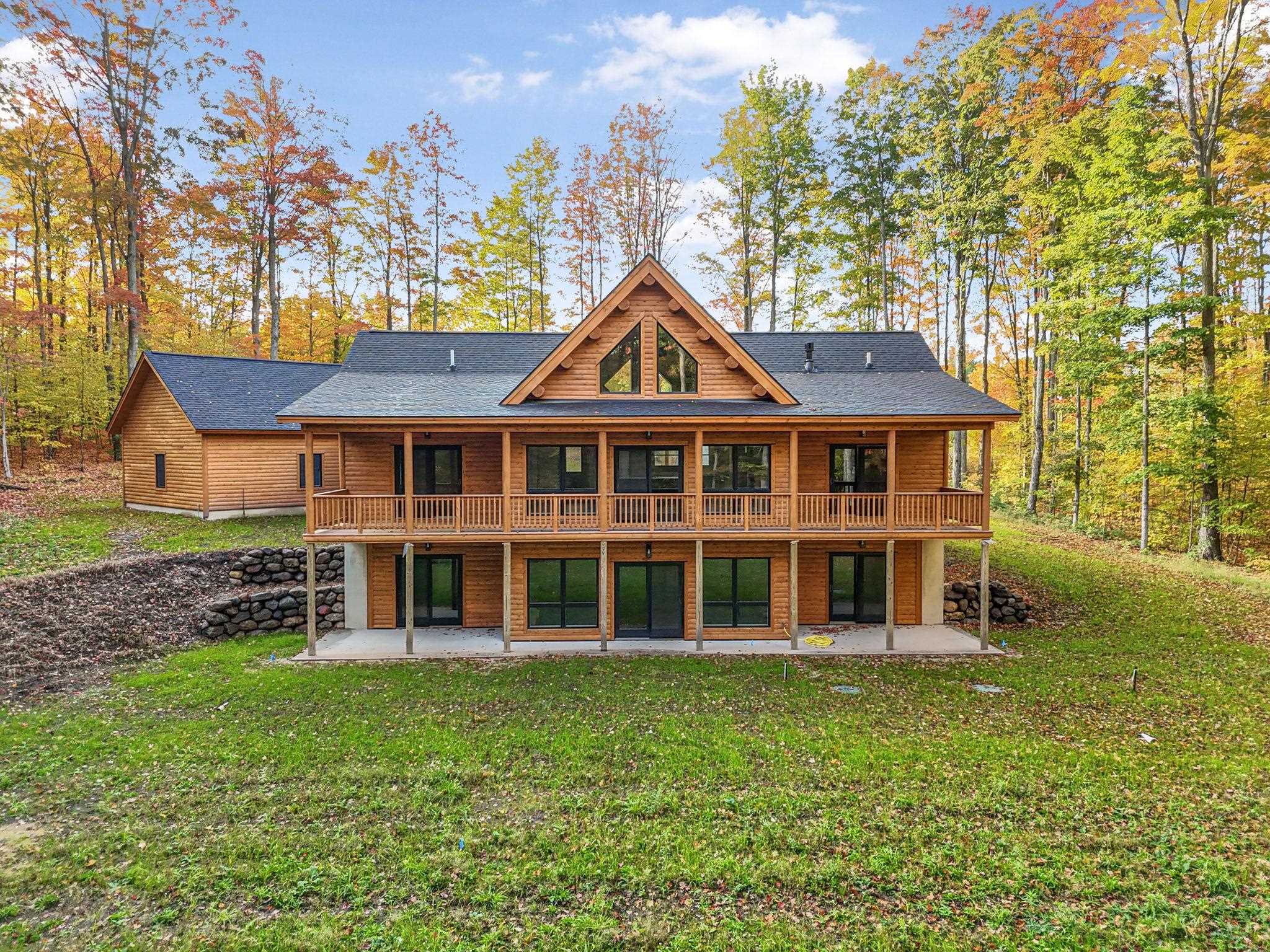 Welcome to your dream retreat at Paradise Ranch, nestled in one of Grand Traverse County's most desirable and rapidly growing areas. This magnificent 4 bedroom (with a darling flex space for an office or a baby room) 3-bathroom home spans over 3400 square feet, offering ample space and luxury. Crafted from gorgeous northern white cedar full log, this residence exemplifies top-notch construction with energy-efficient features throughout. Upon entry, you'll be captivated by the high ceilings with exquisite beams and stunning hardwood flooring that flows seamlessly throughout the home. The large fireplace in the living area provides a cozy retreat during Northern Michigan's chilly days. Take in the breathtaking views from the extensive decking, perfect for enjoying the surrounding nature and quiet. The home boasts a spacious, finished walkout lower level and includes a luxurious walk-in closets. Privacy is paramount with a planned gated entrance and all lots spanning 3+ acres, ensuring you have your personal sanctuary. Conveniently located near Cadillac and Traverse City, this haven allows you to enjoy both tranquillity and city amenities. State land nearby offers endless opportunities for hiking, snowmobiling, and more. Take advantage of the unique opportunity in a community that permits barndominiums and experience living at its best. This home is currently under construction - a perfect chance to secure your future paradise. Don't miss the chance to become part of this exclusive, serene community.