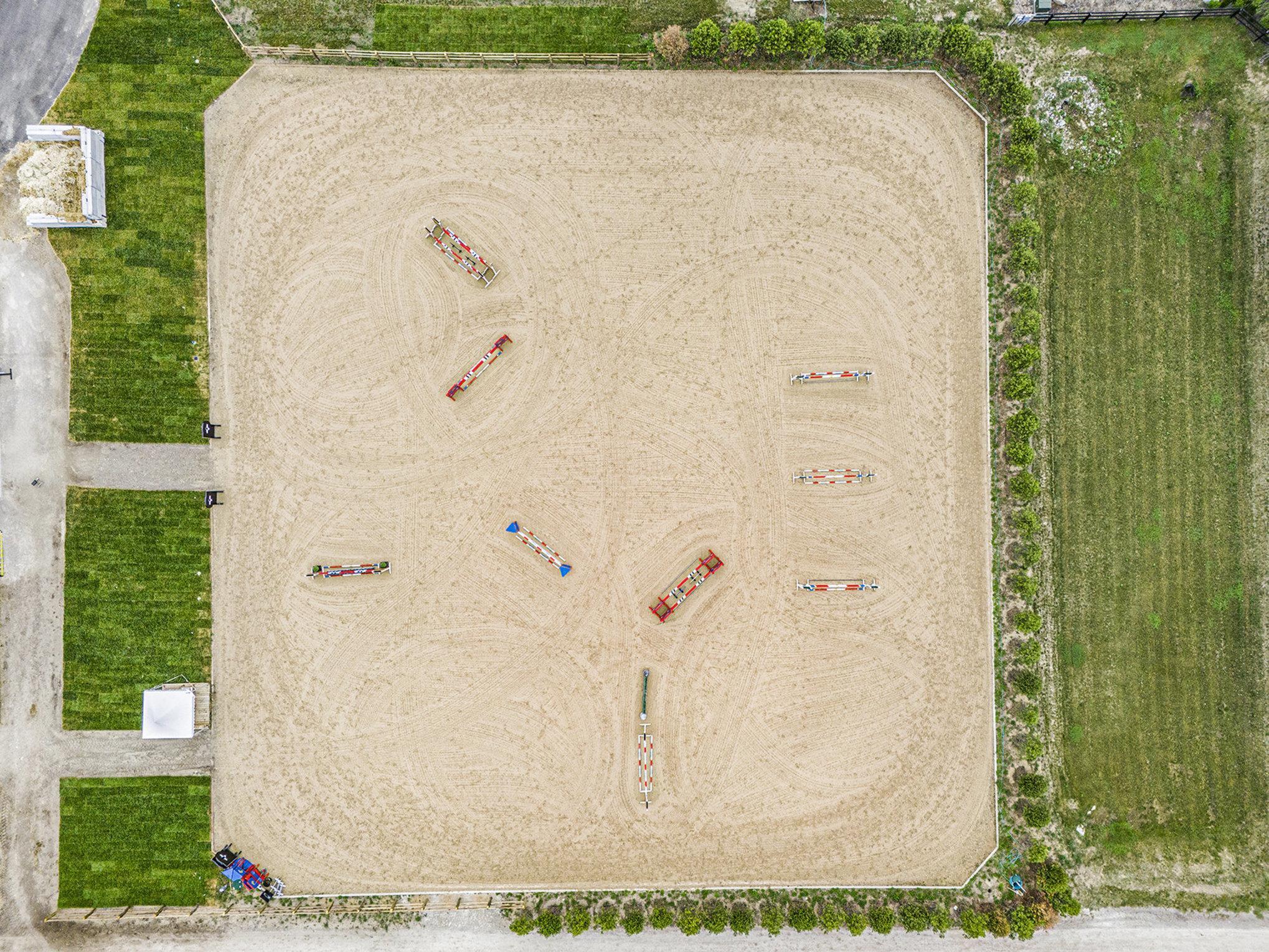Luxury equestrian facility in Grand Prix Village North, Northern Michigan’s premier gated equestrian community. This recently completed 10,858 sq ft custom barn by B&D Builders sits on a high-visibility lot with direct access to Flintfields Horse Park via private bridle paths, while still offering the privacy and security of a gated setting. The barn includes 22 stalls, 4 wash stalls, 4 grooming stalls, feed room, hay storage, laundry room, bathroom, and office. A separate three-car garage includes a well equipped 4-bedroom, 2-bathroom apartment above, perfect for staff or guest accommodations. (Skylights will be installed on the barn in mid-July) The property is fully fenced and professionally landscaped, featuring a 185' x 175' riding arena with an ebb-and-flow watering system and four 60' x 60' fenced paddocks. Grand Prix Village North was designed by equestrians to support a premier equestrian lifestyle, with luxury barns and homes, paved roads, and a private network of bridle paths connecting to the showgrounds. Utilities at the site include electric, natural gas, and high-speed internet. Whether you’re a competitor, trainer, or equestrian enthusiast, this is a rare and exceptional opportunity to own a top-tier facility in one of Michigan’s most sought-after equestrian communities.