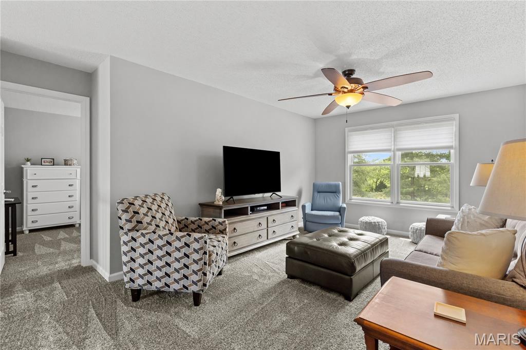 Welcome to this Senior gated community featuring a 9-hole golf course, tennis court, clubhouse w/exercise fac, pool & lots of planned activities. This 1.5 story home is one of the larger models in the community boasting approx 3600 sq ft. Beautifully decorated & move in ready, this gorgeous home will not last. The 2-story entry foyer w/soaring 2-story GR ceiling & F/P w/gas logs is a show stopper. The Kitchen feat white cabs w/solid surface countertops, stainless steel appl, built-in oven, gas cooktop, & walk-in pantry. The Kitchen/Breakfast rm offers a perfect view to the backyard lined with trees which you can enjoy from the screened in porch. The main floor BR w/ensuite also has access to the porch. The 2nd flr inc BR 2 & 3 w/a loft area & small storage rm perfect for workouts or crafts. The LL offers a fin rec rm w/a full bath & storage. 2-car gar, aggregate drive w/brick ext down the sides, sprinkler sys top this one off. Maintenance free living doesn't get better than this.