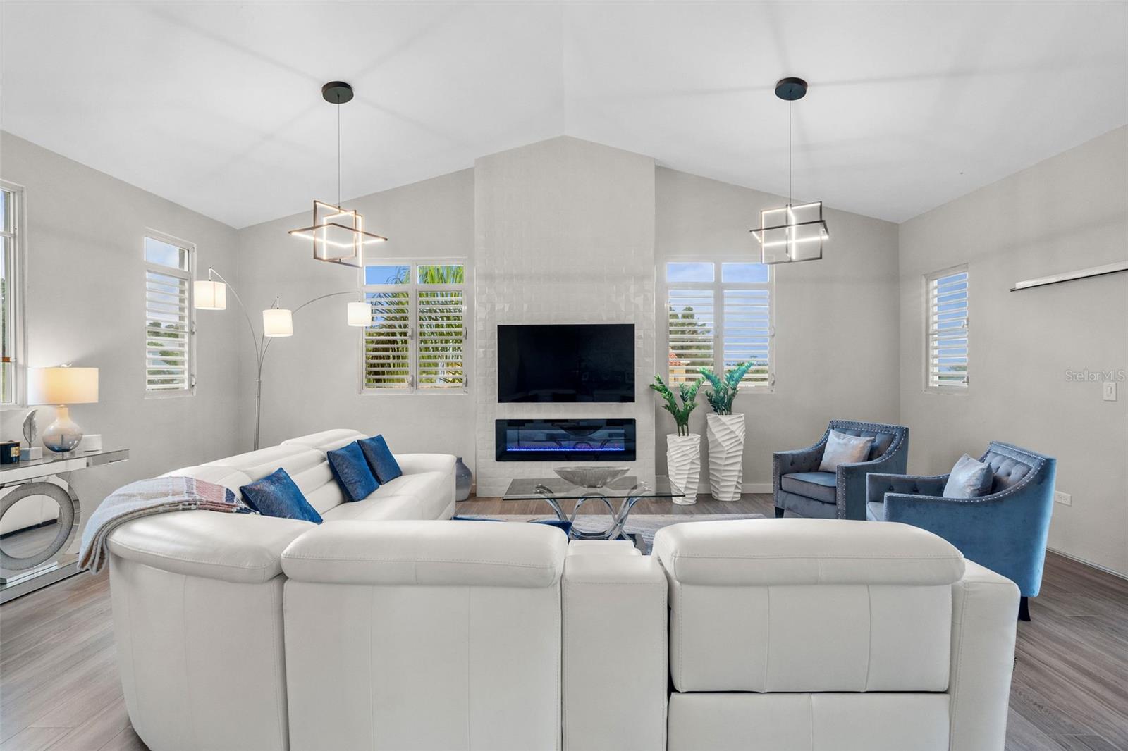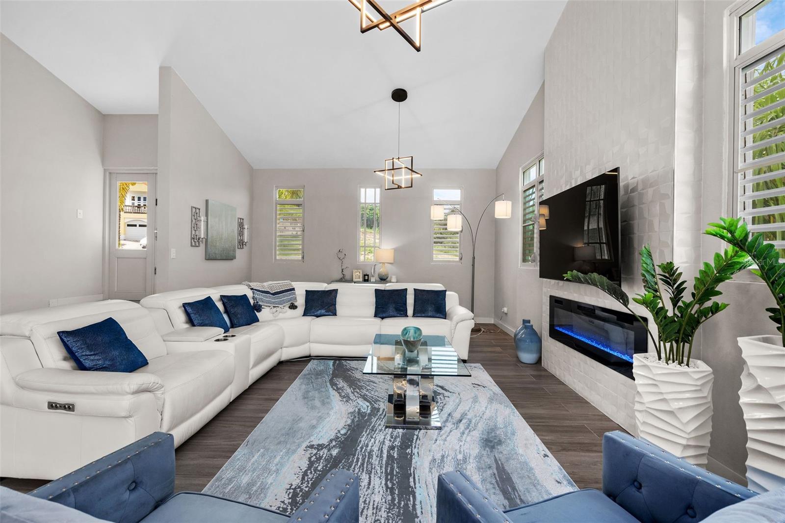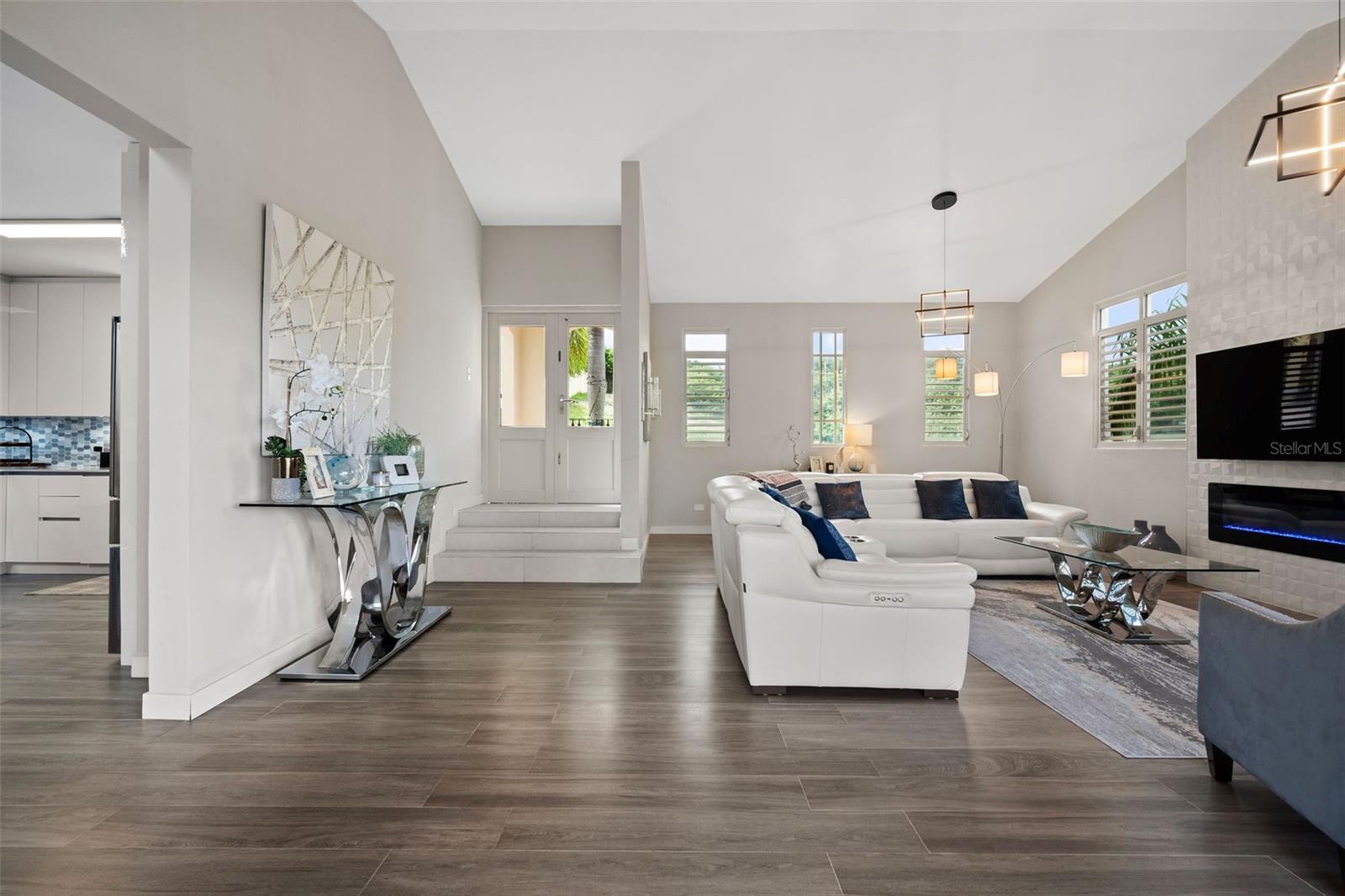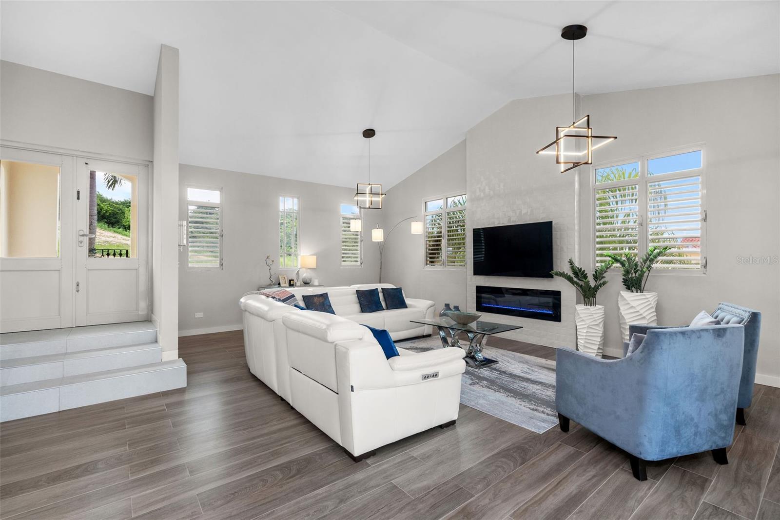 Welcome to this bright, modern, and spacious 3-story residence located in the exclusive Harbour Lights Estates, a gated community within Palmas del Mar. Thoughtfully designed with wood-look ceramic tile floors throughout, this elegant home blends sophistication and functionality in every corner.