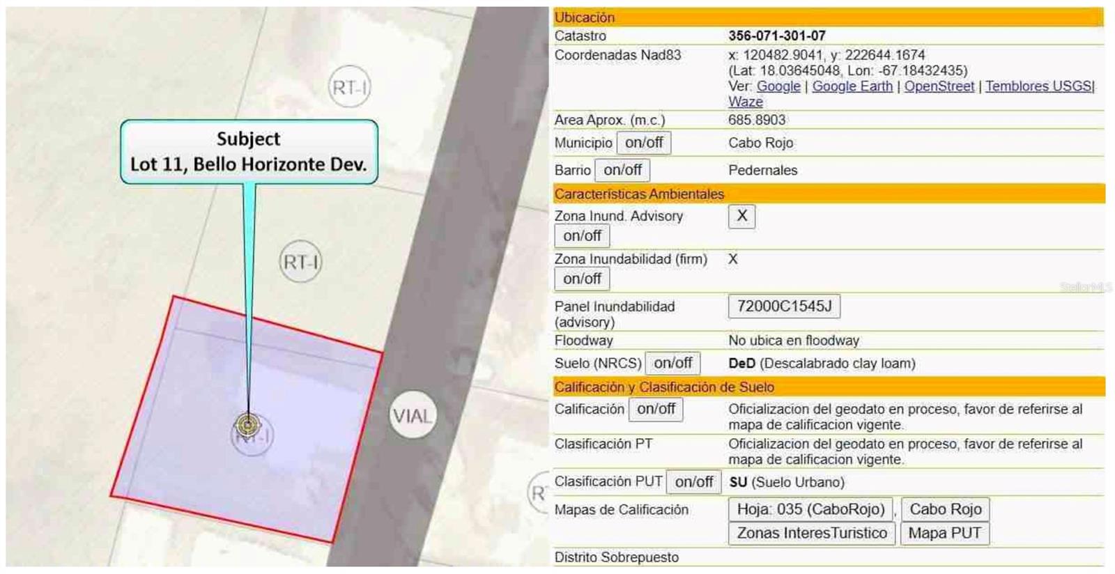 The Bello Horizonte Development is a tranquil and access-controlled neighborhood featuring asphalt roads, concrete sidewalks, curbs, and gutters. The area maintains a stable growth rate and balanced supply and demand in its housing market, with typical marketing times between 3 to 6 months. Nearby amenities include schools, supermarkets, service stations, restaurants, and recreational areas. Access to the main regional highway PR-307 provides easy connectivity to downtown Cabo Rojo, Boquerón Beach, and the scenic coastal routes leading toward Joyuda and El Combate.