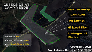 10.04-Acre Lot in Gated Creekside at Camp Verde - A Rare Hill Country Gem Nestled in the scenic Creekside at Camp Verde subdivision, this stunning 10.04-acre lot offers the perfect blend of privacy, beauty, and convenience. Located just minutes from the historic Camp Verde Store & Restaurant, this picturesque property boasts a gentle topography, mature hardwoods, and breathtaking views of the Texas Hill Country. With rich soil ideal for sod and native vegetation, this land is perfectly suited for horses and offers endless possibilities for building your dream home or a peaceful weekend retreat. Steeped in history, Camp Verde is famously known as the home of the U.S. Army's Camel Corps experiment, adding to its unique charm. Today, the area is surrounded by beautiful properties, roaming buffalo, and stunning landscapes, offering a truly special place to make home. Enjoy the tranquility of country living while being ideally situated less than an hour from San Antonio and just 20 minutes from Kerrville and Bandera, the Cowboy Capital of the World. Don't miss this opportunity to own a piece of Hill Country paradise - come explore it for yourself!