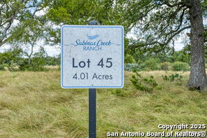 Welcome to Lot 45 in the highly sought-after Sabina's Creek Ranch-an extraordinary 4-acre homesite in a gated community known for its serene privacy, sweeping Hill Country views, and majestic natural beauty. Signature Features * 4-acre corner lot offering enhanced privacy, space, and design flexibility * Heavily treed with mature oaks - a true canopy of beauty and shade * Multiple premium building sites available to create your dream estate * Rock mulching and crushed rock improvements already completed by the current owner-ideal for future landscaping and construction readiness * Breathtaking Hill Country views in every direction * Gated, acreage-style community with light restrictions and high-end custom homes * Just minutes from town conveniences, while offering the peaceful lifestyle of the Hill Country Why Lot 45? This exquisite lot is regarded as one of the most beautiful and desirable in all of Sabina's Creek Ranch. The mature hardwood oaks, gently rolling terrain, and careful land enhancements make it an unparalleled setting for a forever home. Its corner position provides increased design options, more natural light, and extra buffer from neighboring properties. Location Highlights * Located in Phase 2 of the exclusive Sabina's Creek Ranch * Underground utilities and paved roads throughout the community * Minutes from Boerne, TX, and convenient to Fredericksburg, San Antonio, and the Texas Wine Country * Low HOA fees Come walk this stunning lot and experience its peaceful views, shade-filled oak groves, and the natural canvas for your custom home.