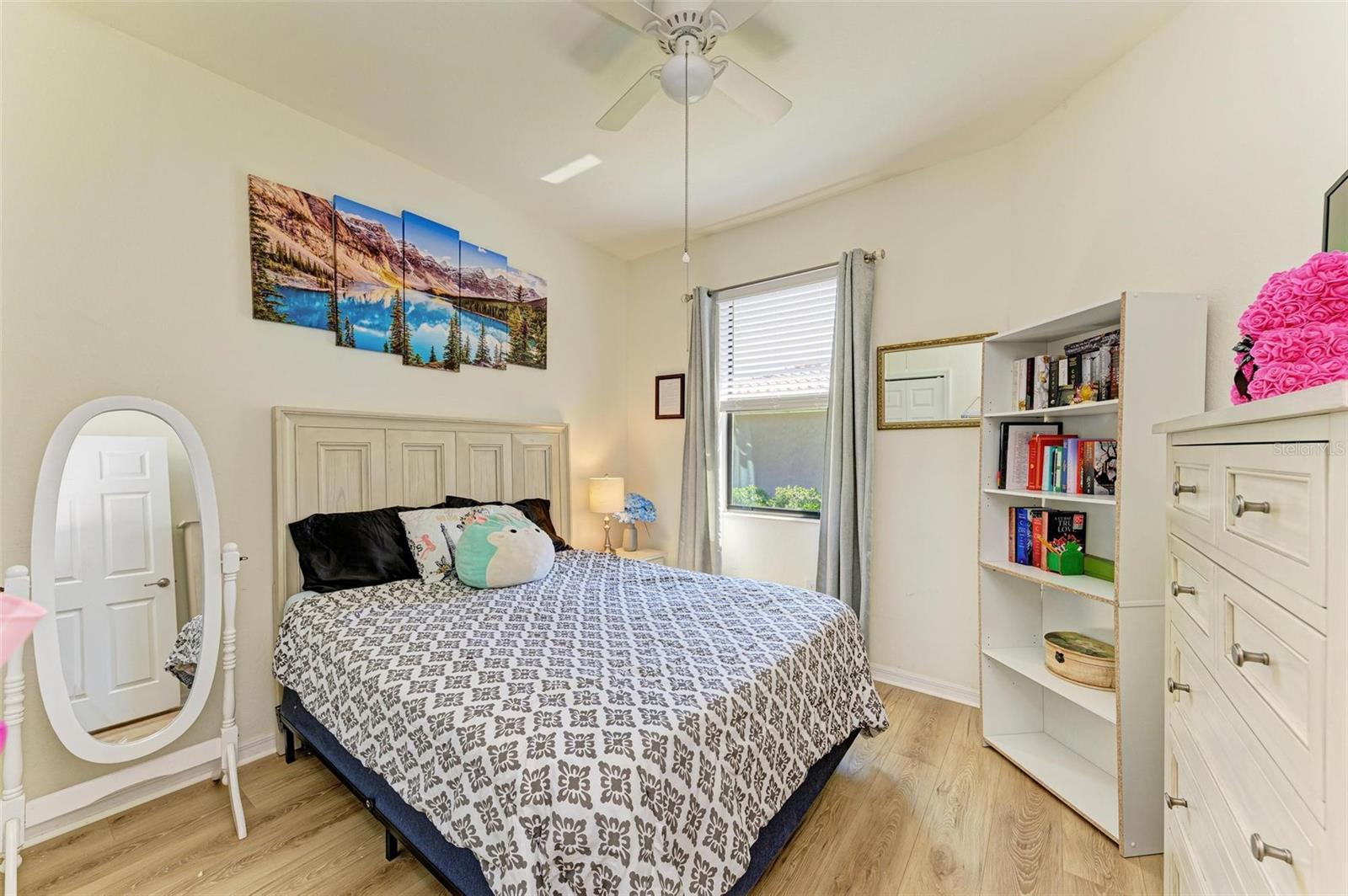 Discover luxury living located within the prestigious Gran Paradiso community of Wellen Park with breathtaking LAKE view from YOUR front yard and private PRESERVE view from YOUR backyard! This meticulously maintained 2-bedroom, 2-bath home plus a versatile den, 2 car garage and almost 2200sf under roof offers both comfort and sophistication. Step inside to find an open-concept split bedroom layout adorned with crown molding, tall ceilings , upgraded luxury vinyl flooring in all bedrooms including den, no carpet, and upgraded lighting fixtures. The gourmet kitchen features granite countertops, stainless steel appliances with brand new refrigerator, spacious pantry and a spacious tiled breakfast bar, perfect for entertaining. Retreat to the expansive master suite, complete with his-and-hers closets, dual sinks, a walk-in shower, and a separate soaking tub—your private spa-like escape. Outside, a tranquil screened lanai invites you to unwind and soak up the Florida sunshine with preserve for extra privacy and screened in front porch with the beautiful lake view to enjoy!The home also provides hurricane resistant shutters, Brand New 2024 Water heater, rain gutters, and a laundry room off the 2 car garage with Washed and Dryer Included providing functionality and peace of mind. Even Golf Cart included as a gift for you to enjoy your florida lifestyle! Enjoy your Resort Lifestyle at Gran Paradiso! Gran Paradiso is a guarded and gated, master-planned community offering world-class resort-style amenities: Grand Clubhouse – A luxurious 20,000 sq. ft. clubhouse with a state-of-the-art fitness center, sauna, steam room, and activity rooms. Expansive Resort Pool & Spa – Take a refreshing dip in the zero-entry heated pool and spa, surrounded by lush landscaping. Tennis & Pickleball Courts – Stay active with lighted courts for year-round play.Walking & Biking Trails – Enjoy miles of scenic paths winding through nature preserves and picturesque lakes. Social Calendar – A vibrant community offering yoga, card games, group outings, and seasonal events. Low-Maintenance Living – HOA fees include cable, all lawn care including mowing, pruning, mulching, weeding, exterior maintenance including paint every 7 years as well as roof replacement, and more! With Wellen Park’s charming shops, restaurants, and entertainment just minutes away, this home is a rare find in one of the most sought-after communities in Southwest Florida. And three Beautiful Beaches within 8 miles radius! Call to schedule your private tour today and enjoy your Florida Living at its best!