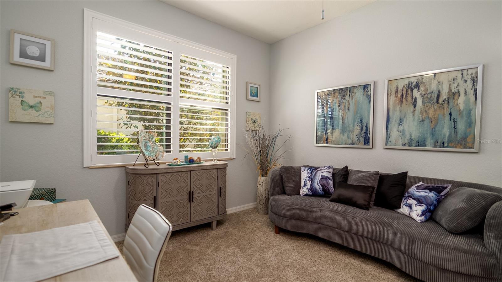 Discover luxury living nestled within the prestigious Gran Paradiso community of Wellen Park. This meticulously maintained 2-bedroom, 2-bath Tuscan-inspired home plus a versatile den offers both comfort and sophistication. Step inside to find an open-concept split bedroom layout adorned with crown molding, plantation shutters, and upgraded fixtures. The gourmet kitchen features granite countertops, stainless steel appliances, and a spacious tiled breakfast bar, perfect for entertaining. Retreat to the expansive master suite, complete with his-and-hers closets, dual sinks, a walk-in shower, and a separate soaking tub—your private spa-like escape. Outside, a tranquil screened lanai invites you to unwind and soak up the Florida sunshine. This property features a dedicated, fully fenced & gated dog run, offering a secure and spacious area for your pets to roam and play. The home also boasts user friendly WIFI remote hurricane and accordion shutters, rain gutters, and a mud/laundry room off the 2 car garage, providing functionality and peace of mind. Live the Resort Lifestyle at Gran Paradiso! Gran Paradiso is a guarded and gated, master-planned community offering world-class resort-style amenities: Grand Clubhouse – A luxurious 20,000 sq. ft. clubhouse with a state-of-the-art fitness center, sauna, steam room, and activity rooms. Expansive Resort Pool & Spa – Take a refreshing dip in the zero-entry heated pool and spa, surrounded by lush landscaping. Tennis & Pickleball Courts – Stay active with lighted courts for year-round play.Walking & Biking Trails – Enjoy miles of scenic paths winding through nature preserves and picturesque lakes. Social Calendar – A vibrant community offering yoga, card games, group outings, and seasonal events. Low-Maintenance Living – HOA fees include cable & internet for just $42/month, all lawn care including mowing, pruning, mulching, weeding, exterior maintenance including paint every 7 years as well as roof replacement, and more! With Wellen Park’s charming shops, restaurants, and entertainment just minutes away, this home is a rare find in one of the most sought-after communities in Southwest Florida. Seller motivated. Furniture negotiable. Call to schedule your private tour today!