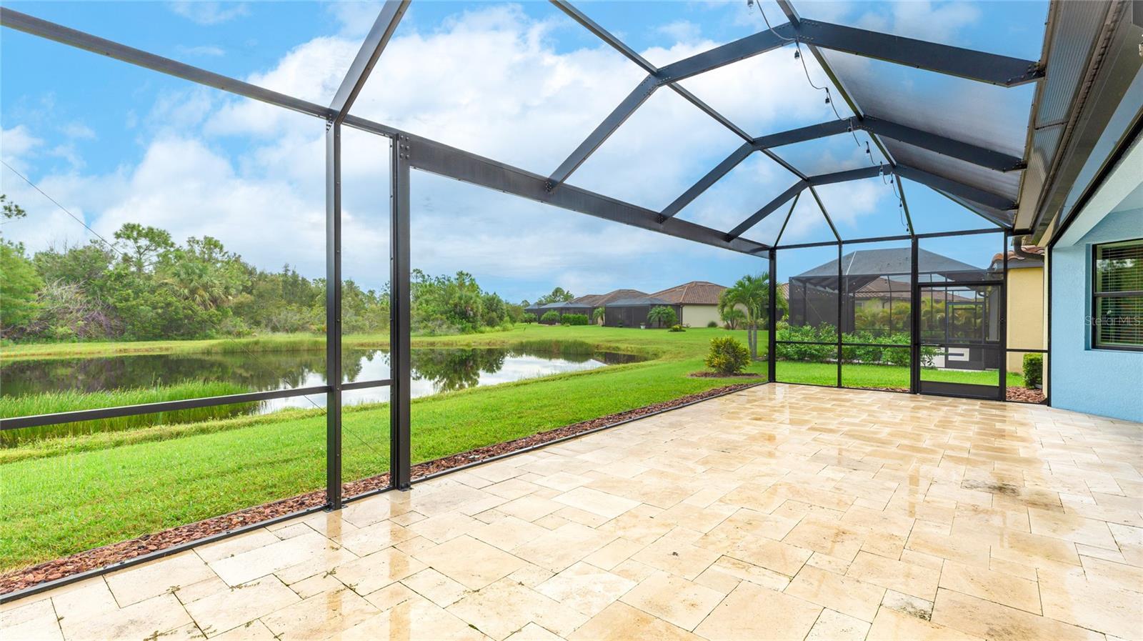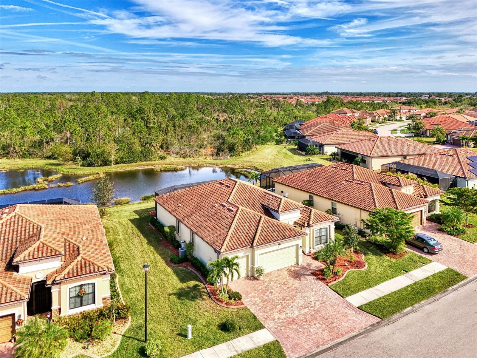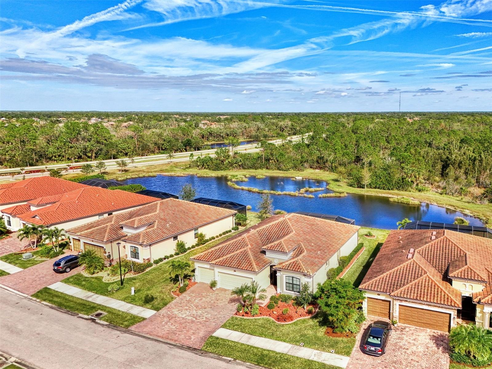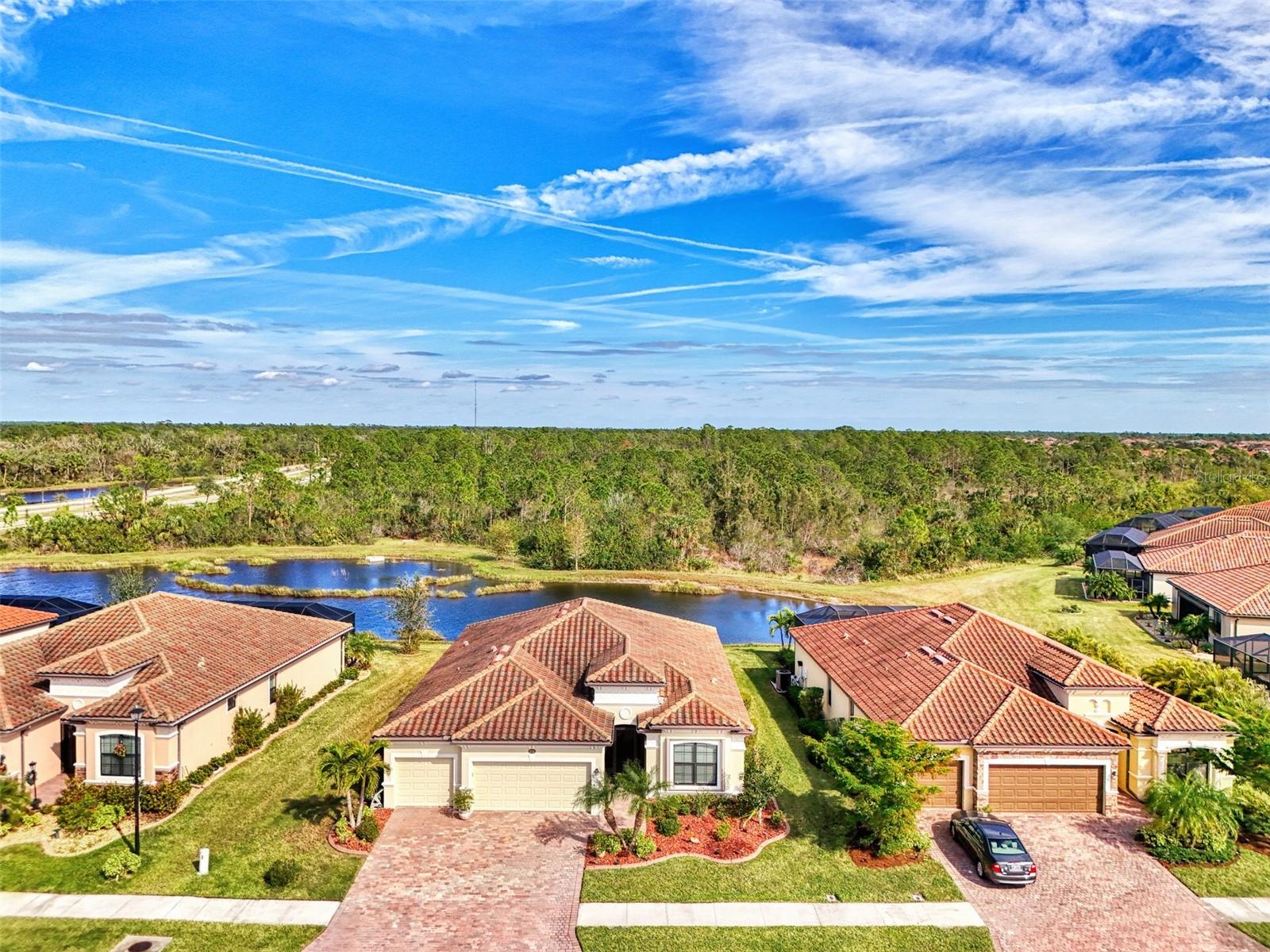 A RARE PRIVATE LAGOON STYLE WATER AND PRESERVE LOCATION AND ONE OF THE LOWEST PRICED 3 CAR GARAGE SINGLE-FAMILY HOMES IN GRAN PARADISO AND WELLEN PARK. Discover the epitome of serene luxury in this stunning home on a very special homesite, nestled in the Gran Paradiso community of Wellen Park, Venice, Florida. This residence offers unparalleled privacy with breathtaking views of a tranquil pond and lush conservation land from the great room, kitchen, master bedroom, and the expansive extended screened lanai featuring elegant travertine stone flooring. The front of the home faces a private preserve, making it one of the only properties in the neighborhood to boast such a rare combination of front and rear seclusion. Step inside to find a carpet-free interior, freshly painted in December 2024, with porcelain tile throughout and luxury vinyl flooring in all bedrooms. The gourmet kitchen, updated in 2023, showcases exquisite quartzite countertops and a spacious island, complemented by custom cabinetry installed in 2024 in the dinette area. The extra-large clear view lanai screen invites you to savor the scenic backdrop, while the screened front entrance with a hurricane shade and accordion hurricane shades on all windows, plus an electric hurricane shade on the lanai, ensure peace of mind. This exceptional home also includes a well-maintained golf cart with less than 800 miles, perfect for exploring the vibrant community. Don’t miss this rare opportunity to own a slice of paradise with unmatched privacy and modern elegance located in one of the largest gated communities in Wellen Park.