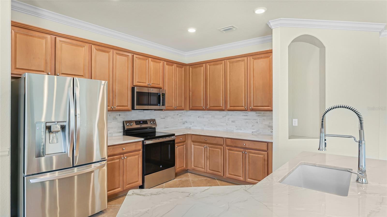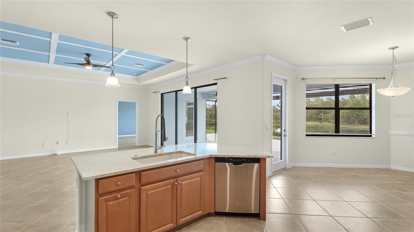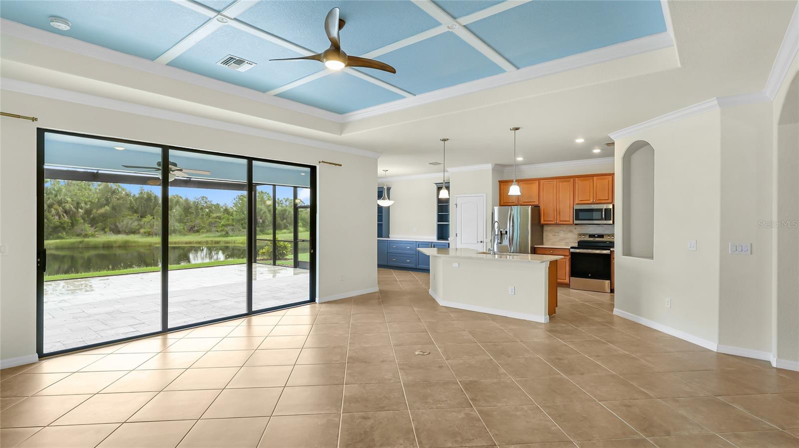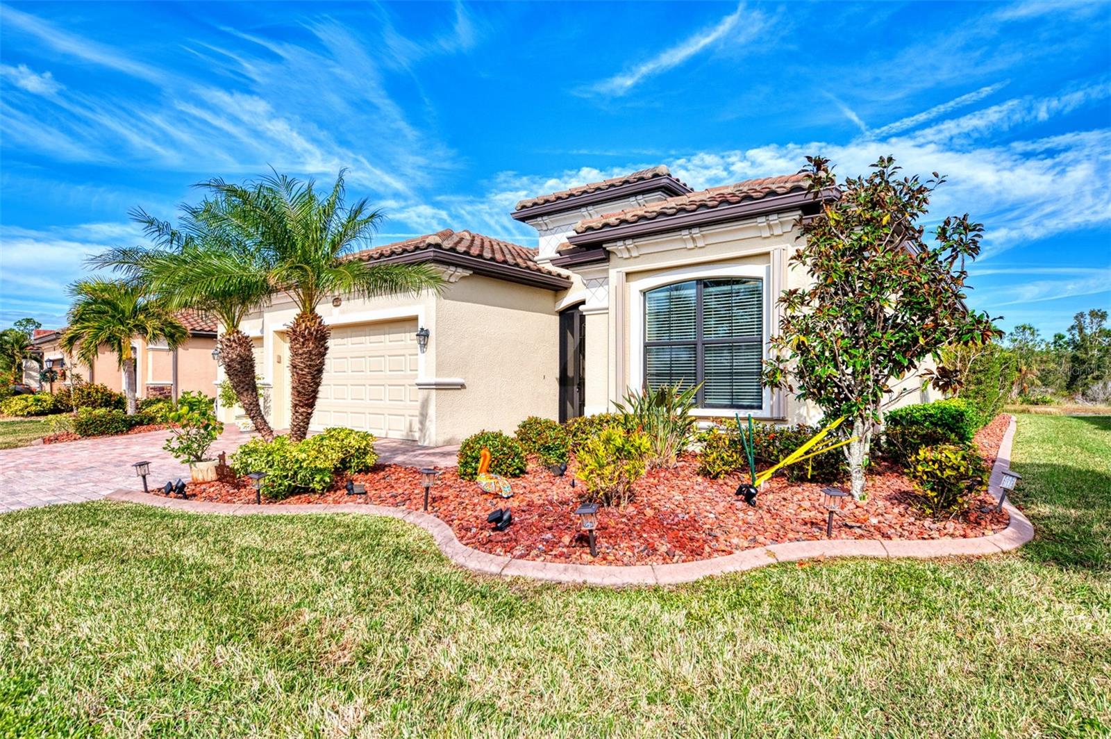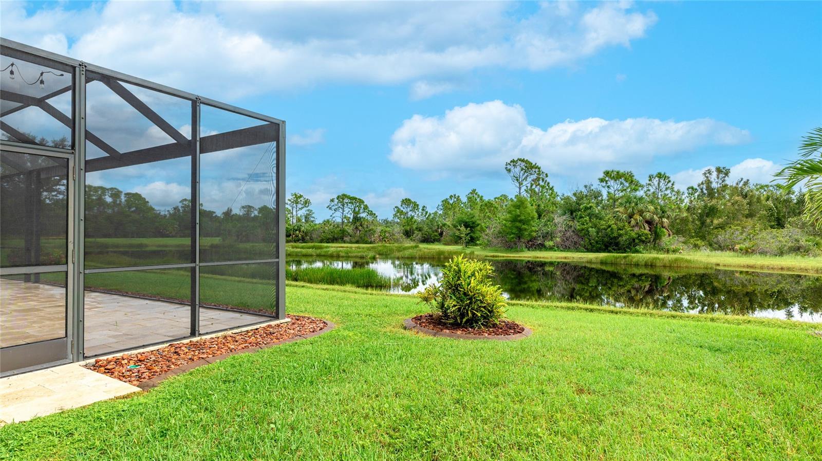 A RARE PRIVATE LAGOON STYLE WATER AND PRESERVE LOCATION AND ONE OF THE LOWEST PRICED 3 CAR GARAGE SINGLE-FAMILY HOMES IN GRAN PARADISO AND WELLEN PARK. Discover the epitome of serene luxury in this stunning home on a very special homesite, nestled in the Gran Paradiso community of Wellen Park, Venice, Florida. This residence offers unparalleled privacy with breathtaking views of a tranquil pond and lush conservation land from the great room, kitchen, master bedroom, and the expansive extended screened lanai featuring elegant travertine stone flooring. The front of the home faces a private preserve, making it one of the only properties in the neighborhood to boast such a rare combination of front and rear seclusion. Step inside to find a carpet-free interior, freshly painted in December 2024, with porcelain tile throughout and luxury vinyl flooring in all bedrooms. The gourmet kitchen, updated in 2023, showcases exquisite quartzite countertops and a spacious island, complemented by custom cabinetry installed in 2024 in the dinette area. The extra-large clear view lanai screen invites you to savor the scenic backdrop, while the screened front entrance with a hurricane shade and accordion hurricane shades on all windows, plus an electric hurricane shade on the lanai, ensure peace of mind. This exceptional home also includes a well-maintained golf cart with less than 800 miles, perfect for exploring the vibrant community. Don’t miss this rare opportunity to own a slice of paradise with unmatched privacy and modern elegance located in one of the largest gated communities in Wellen Park.