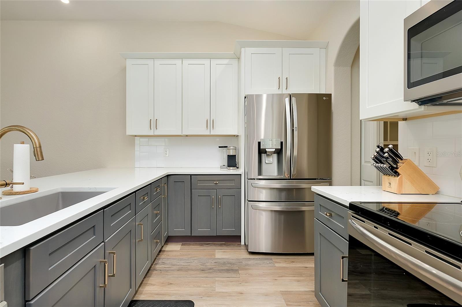 Inside, this villa lives like a brand-new home thanks to a long list of premium renovations. Enjoy peace of mind with a 2025 new roof, hurricane-impact windows, and a whole-house power surge protector. Stylish luxury vinyl flooring flows throughout, while updated appliances deliver everyday comfort and efficiency. The upgraded Nest thermostat keeps the home perfectly dialed in, and newly replaced screens mean your lanai is ready for breezy mornings and relaxing evenings. See Brochure for upgrades.