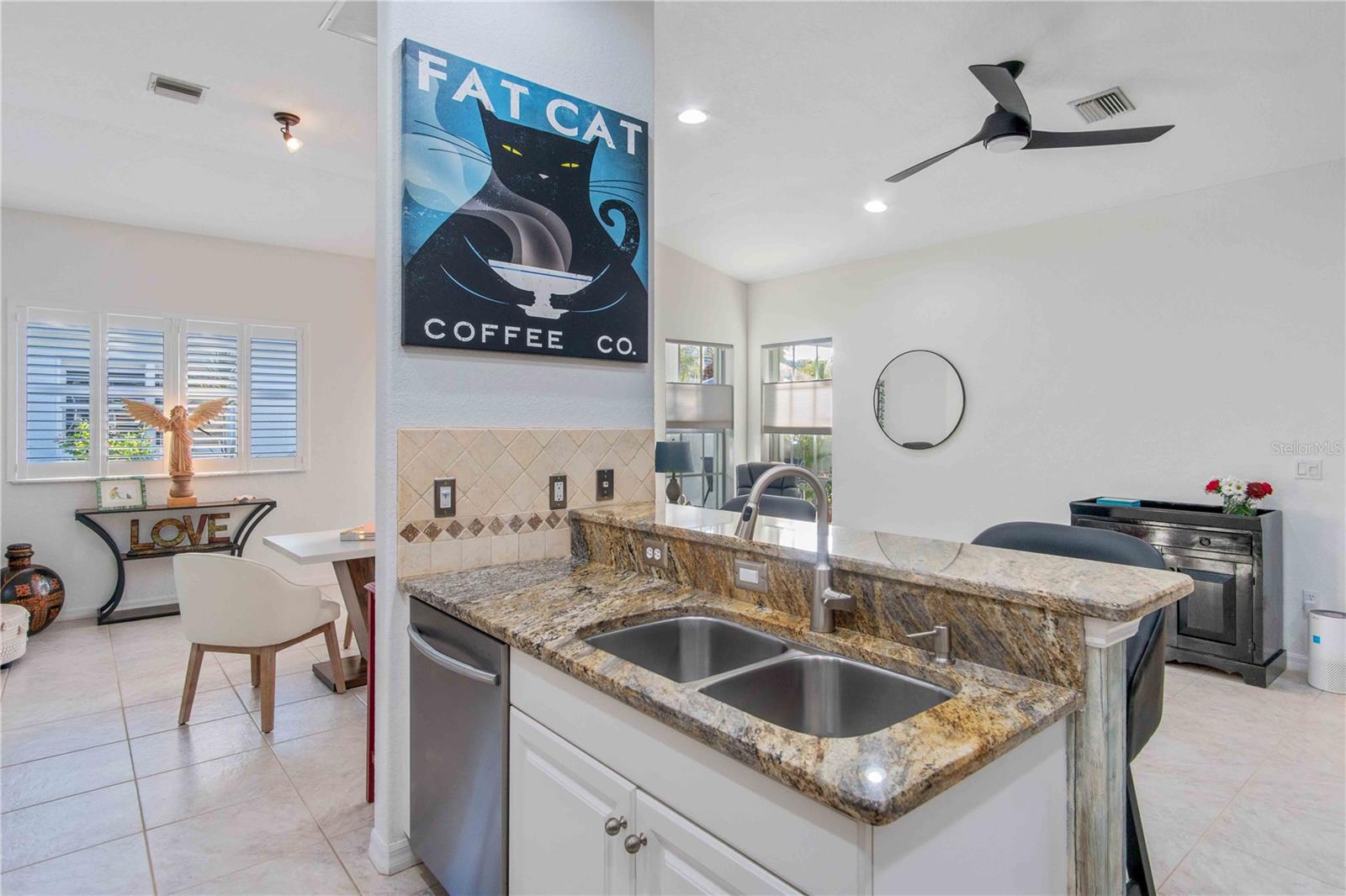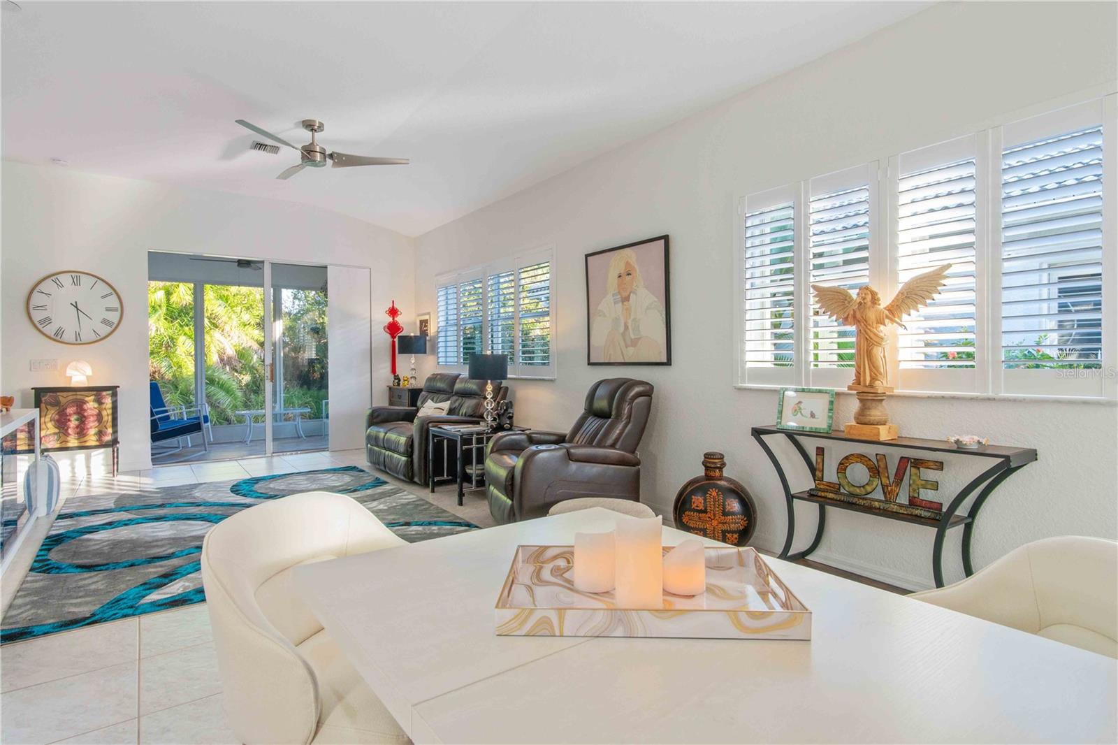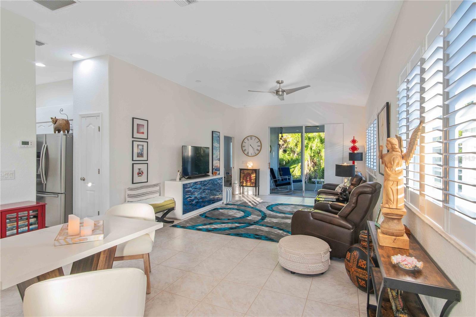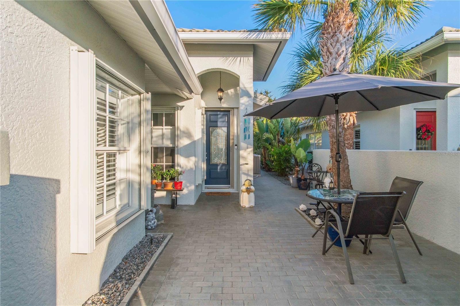 Welcome to your piece of paradise in the highly sought-after maintenance free community of Auburn Hammocks. This pristine community of only 47 properties includes a heated community pool directly across the street from your new villa, a clubhouse, a gated entry for security, lawn care, irrigation, and more despite it’s shockingly affordable HOA fees. The property features plenty of privacy in the back yard and is fully move in ready for your convenience. Located only 4 miles from Venice beach, with top dining and entertainment destinations on the way, will have you feeling like every day is a vacation from the moment you move in. Once inside the property, you will be greeted by an open layout with tall ceilings and plenty of space to entertain friends and family, or to simply enjoy yourself. The kitchen features granite countertops, planter shelves, a pantry, and stainless-steel appliances. Nearby there is a custom coffee bar with custom cabinets, granite counters, and a wine fridge that is included with the sale. The layout of the home allows you to choose where you want your dining room to be situated and there are wood planation shutters throughout the home along with modern fans and fixtures. The master suite is well oversized, with room for a king bedroom set and more. Plus, the closet is among the largest of closets you will ever find in this price. The master bath has his & her vanities, granite counters, tiled shower, and additional overhead storage. On the opposite side of the home you will find the guest bedroom and bathroom near the interior laundry room giving you plenty of privacy from guests. The bathroom matches the master suite with the added bonus of a shower/tub combo, and the guest bedroom is also well sized with a larger than typical closet. Enjoy your morning cup of coffee or relax in the evenings from your screened in lanai as you plan out your future experiences that Venice has to offer. Unlike many other units, this Villa also has full hurricane protection with accordion shutters for the front door and all windows, along with traditional shutters for the lanai slider and a generator plug in the garage. Contact your agent today for a private showing before this opportunity is gone!