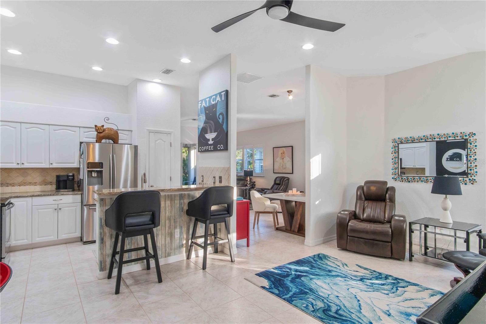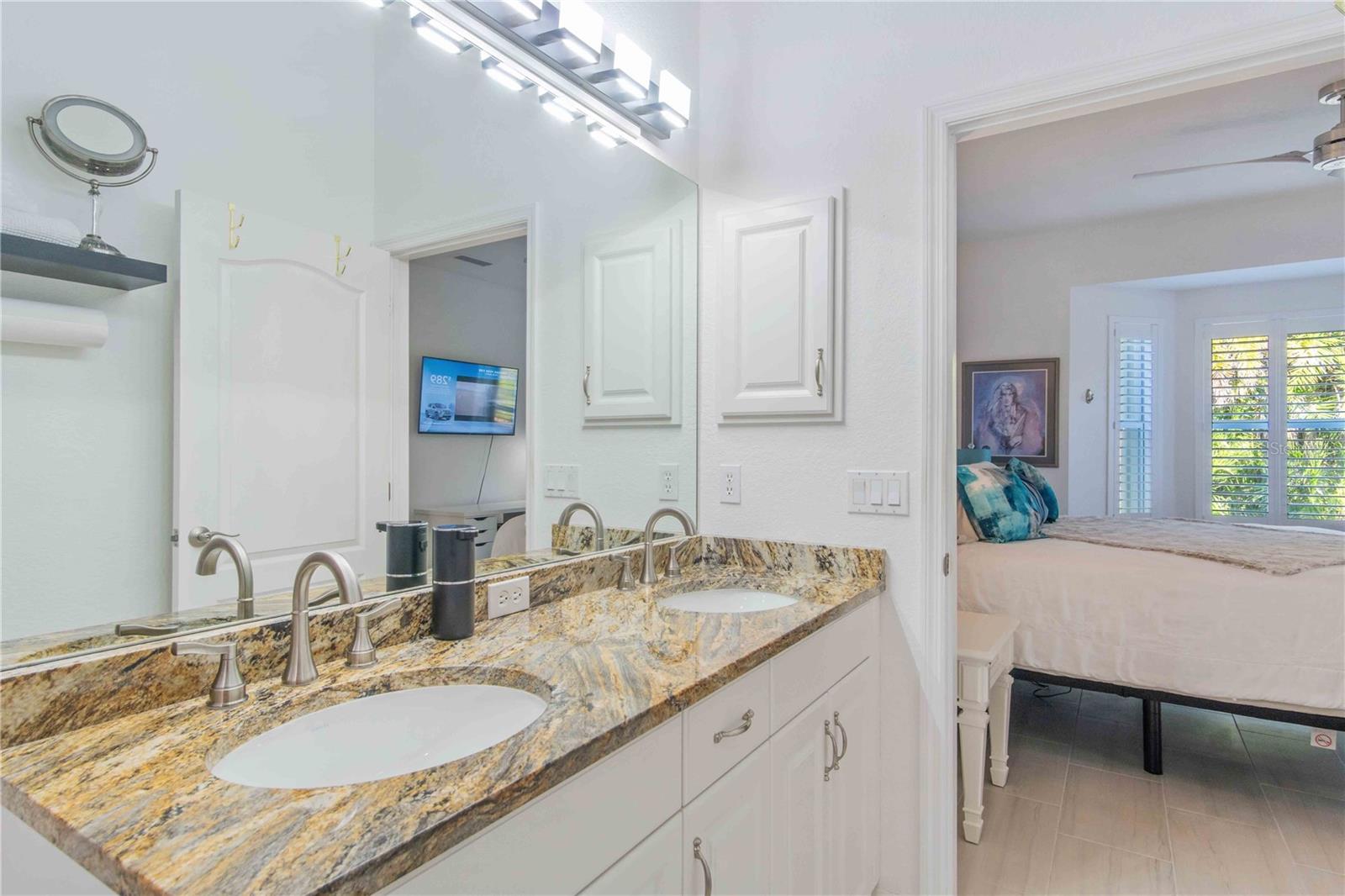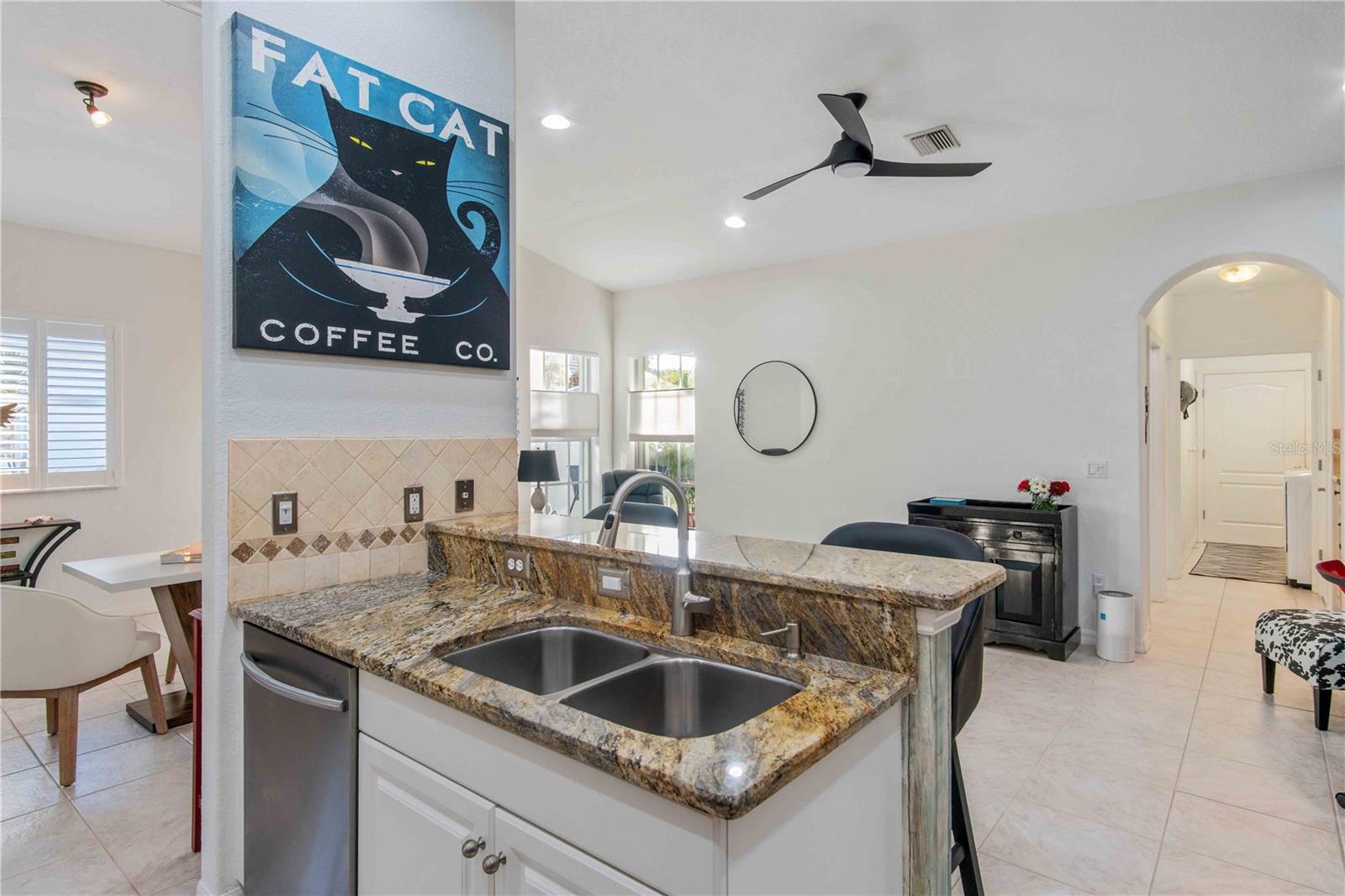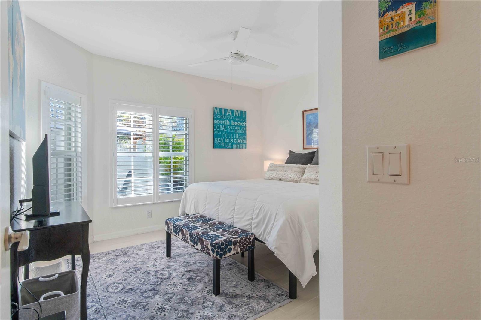 Welcome to your piece of paradise in the highly sought-after maintenance free community of Auburn Hammocks. This pristine community of only 47 properties includes a heated community pool directly across the street from your new villa, a clubhouse, a gated entry for security, lawn care, irrigation, and more despite it’s shockingly affordable HOA fees. The property features plenty of privacy in the back yard and is fully move in ready for your convenience. Located only 4 miles from Venice beach, with top dining and entertainment destinations on the way, will have you feeling like every day is a vacation from the moment you move in. Once inside the property, you will be greeted by an open layout with tall ceilings and plenty of space to entertain friends and family, or to simply enjoy yourself. The kitchen features granite countertops, planter shelves, a pantry, and stainless-steel appliances. Nearby there is a custom coffee bar with custom cabinets, granite counters, and a wine fridge that is included with the sale. The layout of the home allows you to choose where you want your dining room to be situated and there are wood planation shutters throughout the home along with modern fans and fixtures. The master suite is well oversized, with room for a king bedroom set and more. Plus, the closet is among the largest of closets you will ever find in this price. The master bath has his & her vanities, granite counters, tiled shower, and additional overhead storage. On the opposite side of the home you will find the guest bedroom and bathroom near the interior laundry room giving you plenty of privacy from guests. The bathroom matches the master suite with the added bonus of a shower/tub combo, and the guest bedroom is also well sized with a larger than typical closet. Enjoy your morning cup of coffee or relax in the evenings from your screened in lanai as you plan out your future experiences that Venice has to offer. Unlike many other units, this Villa also has full hurricane protection with accordion shutters for the front door and all windows, along with traditional shutters for the lanai slider and a generator plug in the garage. Contact your agent today for a private showing before this opportunity is gone!