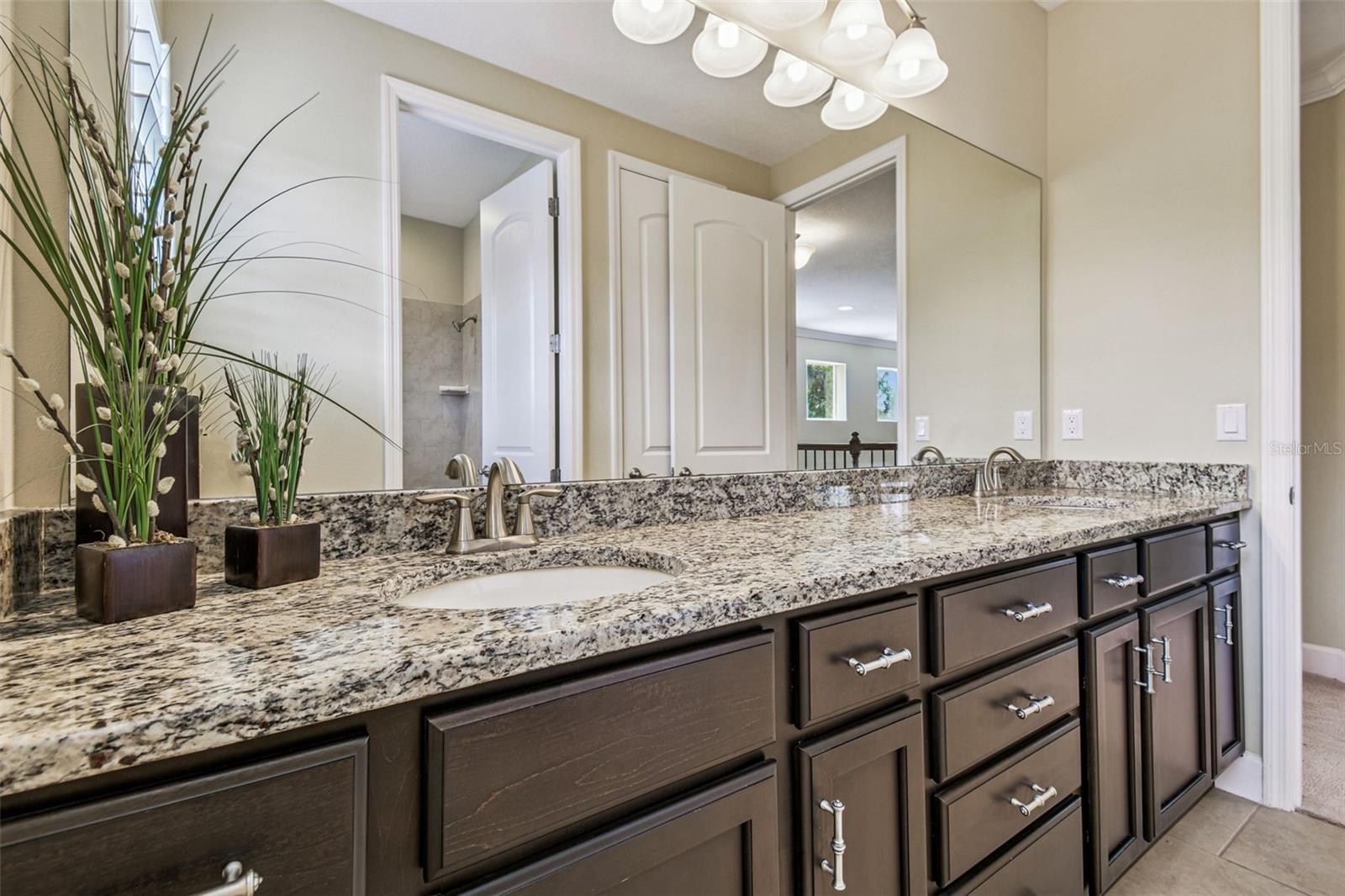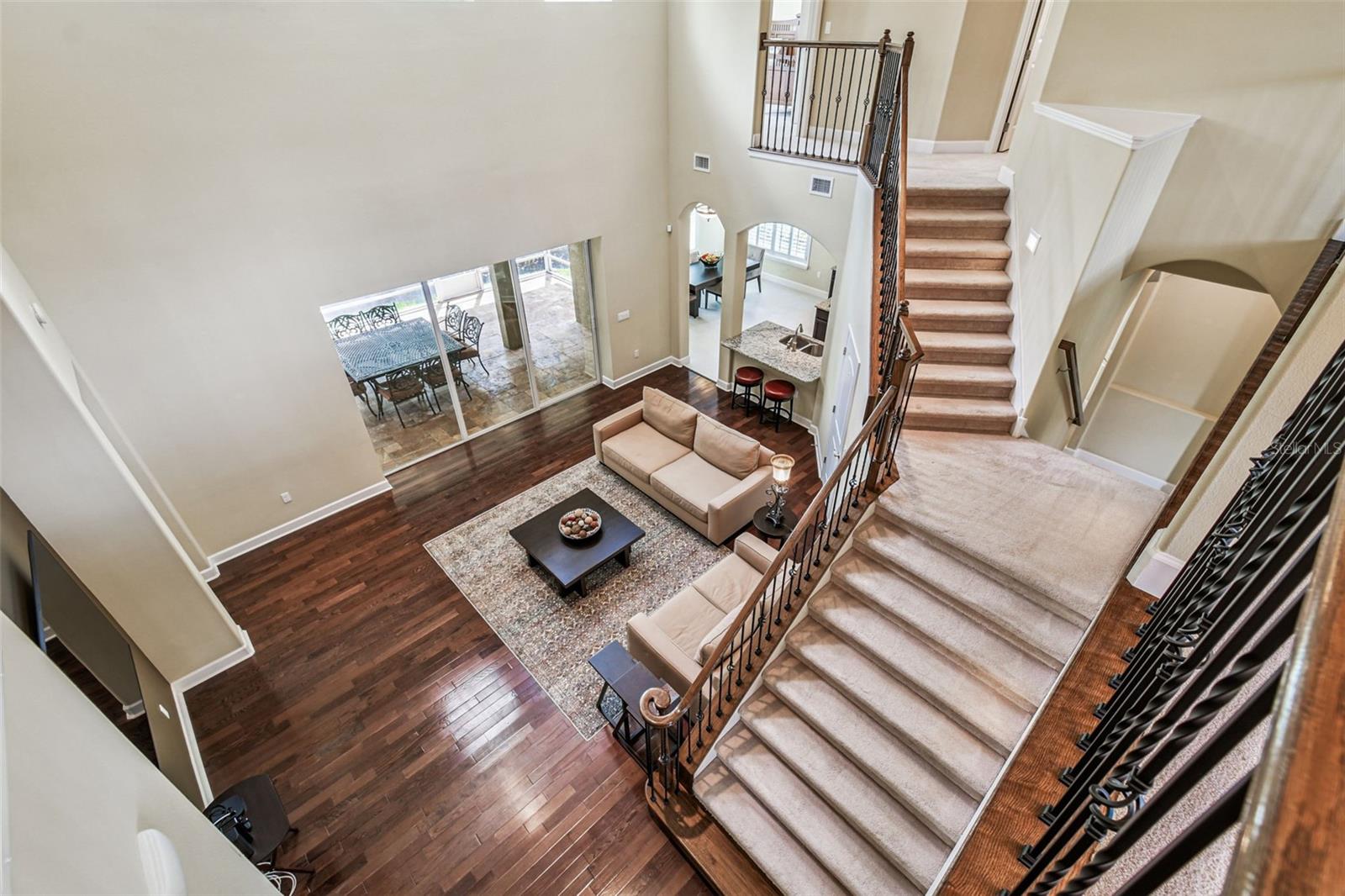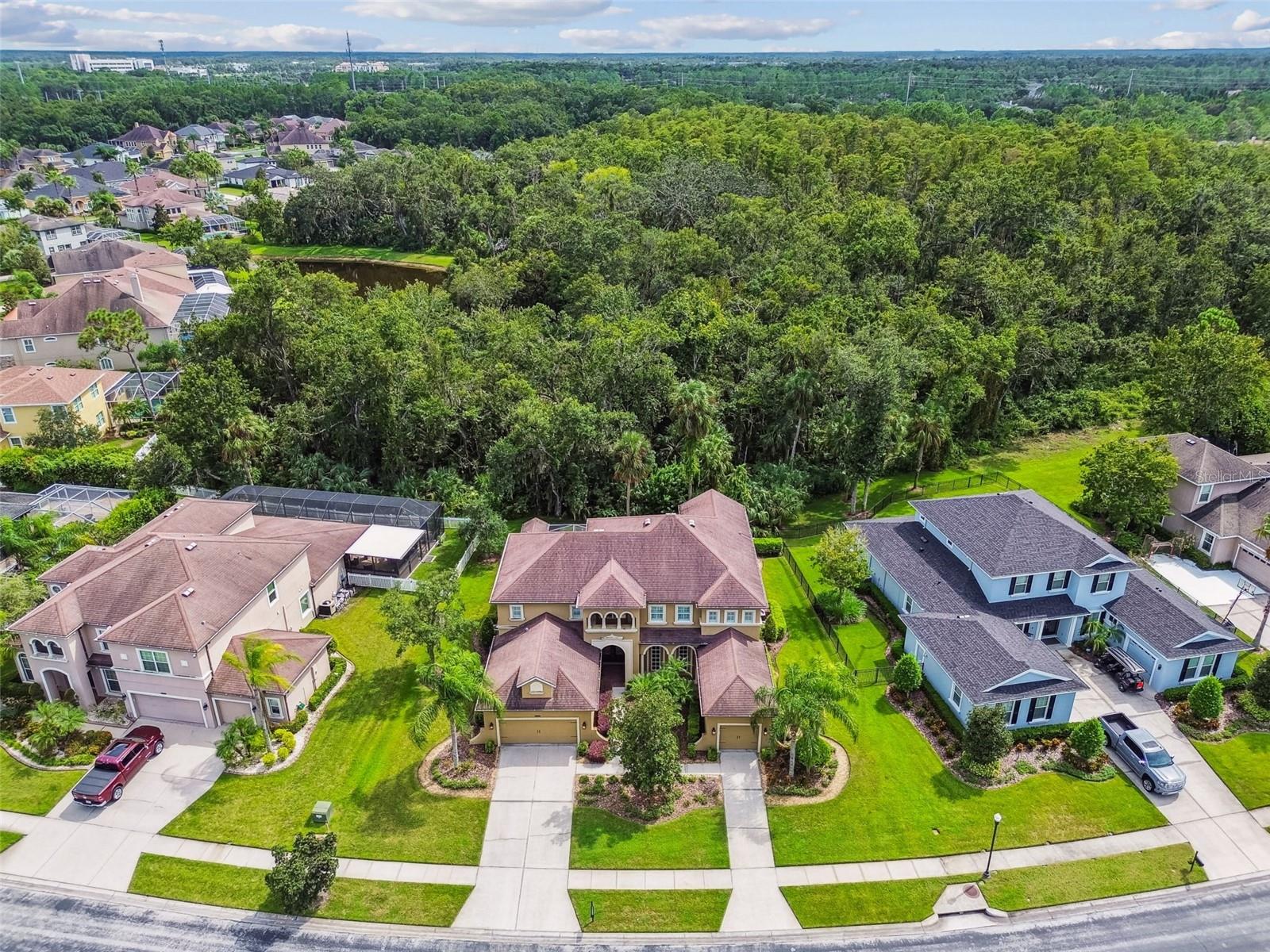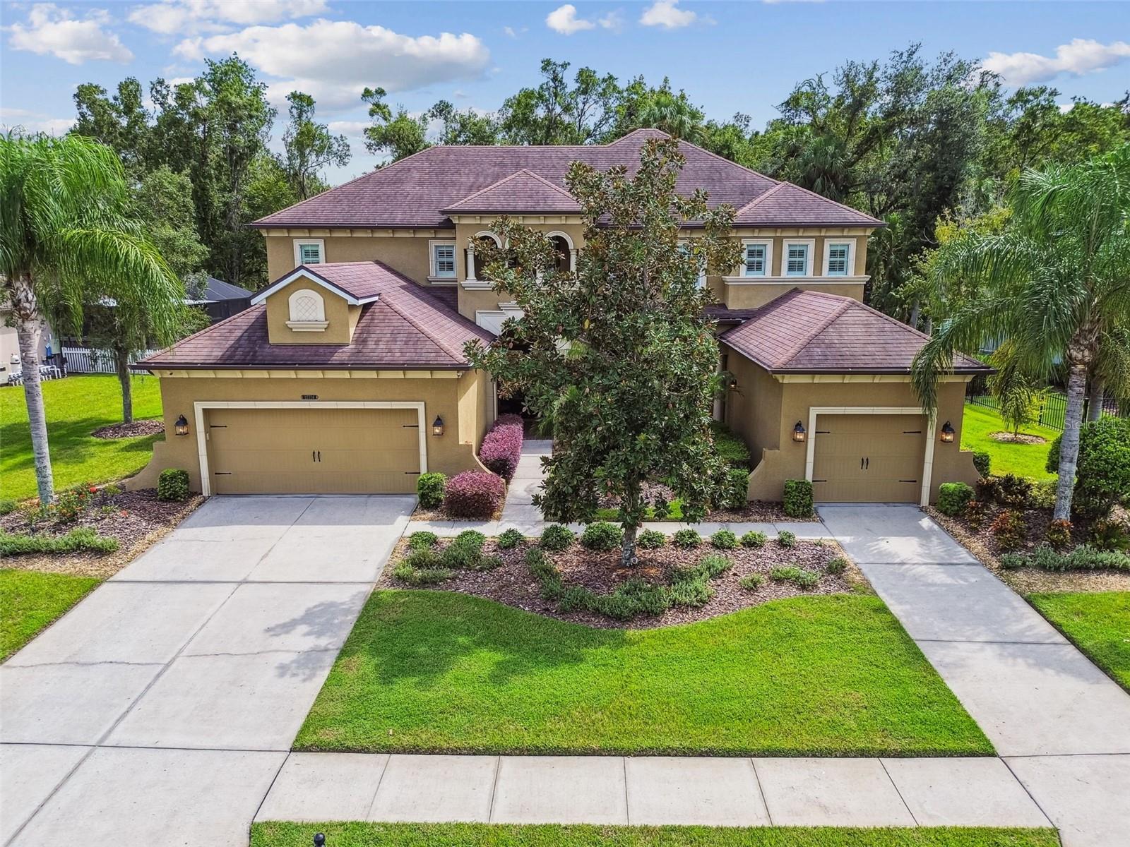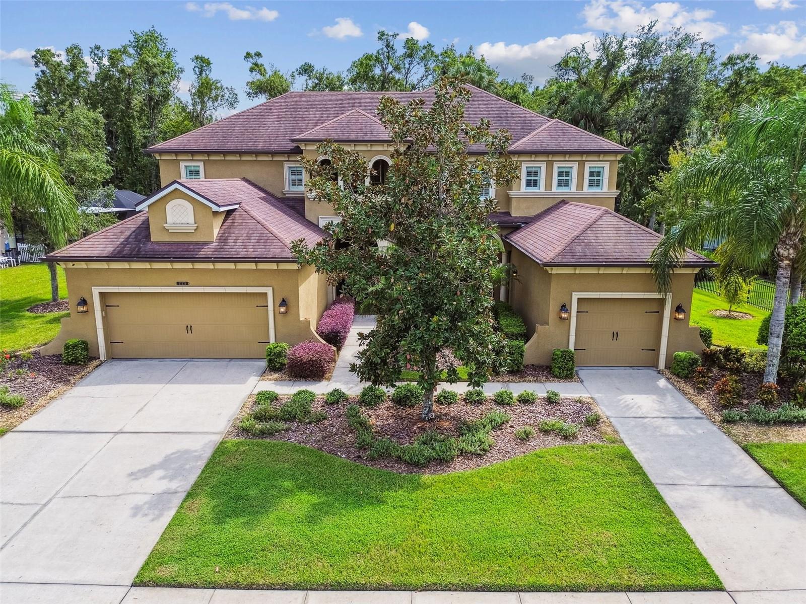 Seven Oaks. Gorgeous cul-de-sac home on magnificent conservation lot in gated Watermark, Seven Oaks most prestigious village. This 4 bedroom, 3 ½ bath, 3 car split garage residence also has a loft, theater room, bonus room and an oversized, covered and screened lanai. The soaring ceilings provide for a very open feeling. The large kitchen with an island has upgraded stainless steel appliances, eat in area, walk-in pantry, overlooking the huge family room. The oversized first floor primary suite has views of conservation, dual sinks, walk-in closet, shower and separate tub. The family room is open to the second floor providing an abundance of natural light, and has two oversized bedrooms, one with access to large balcony, a bath with double sinks, a loft, theater and large bonus room. This home has many upgrades, including but not limited to guest bedroom on first floor, extensive wood floors, extensive plantation shutters, upgraded tile, large dining room & living room combination, screened travertine lanai with a half bath, split garages, sprinkler system, alarm system, gutters, acrylic coated garage floors, and a stately entrance with a front porch.