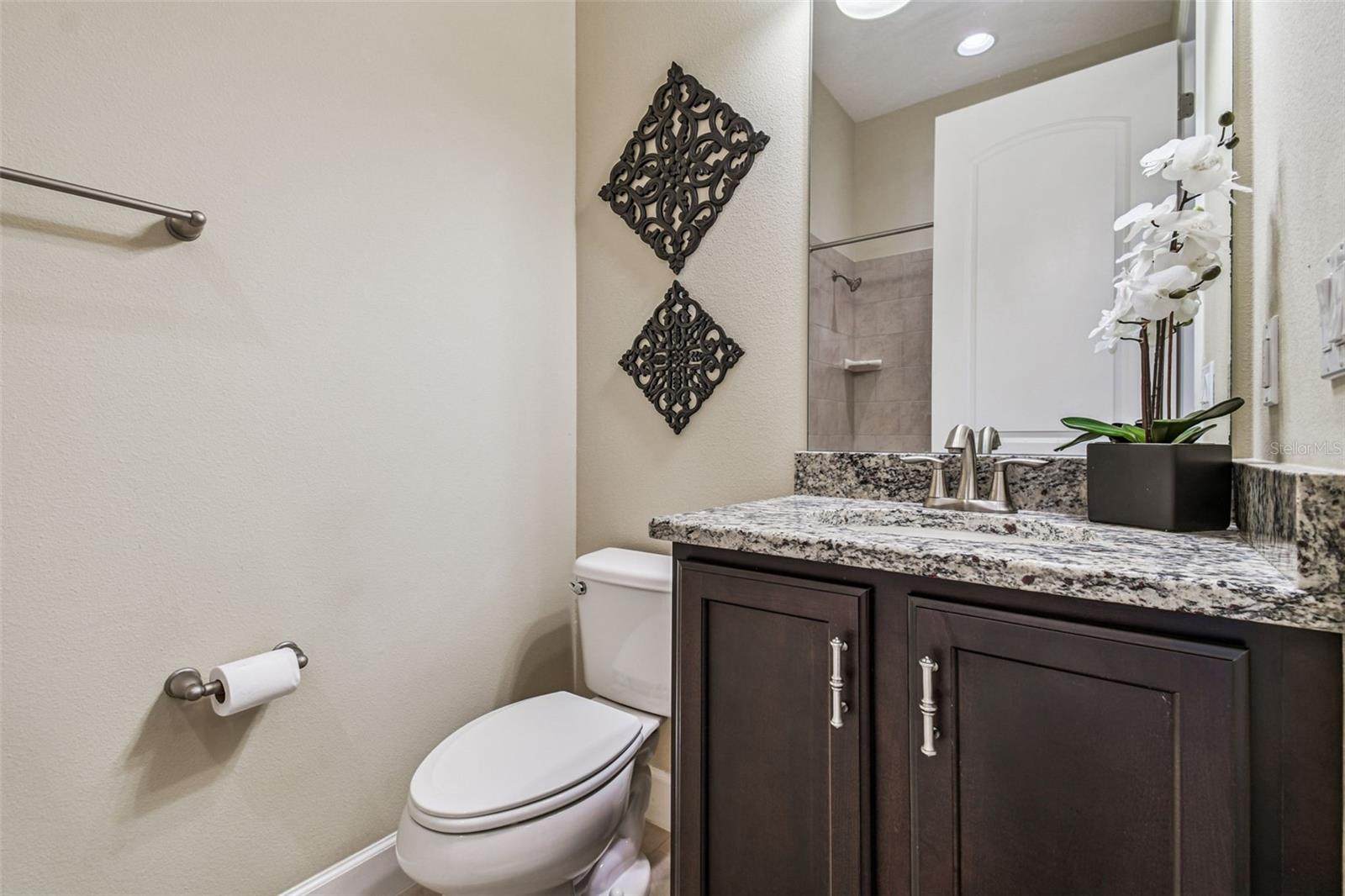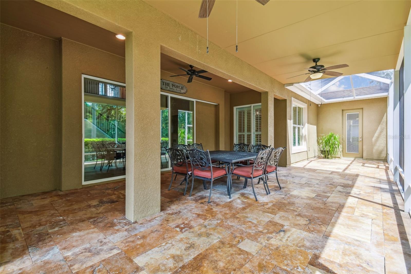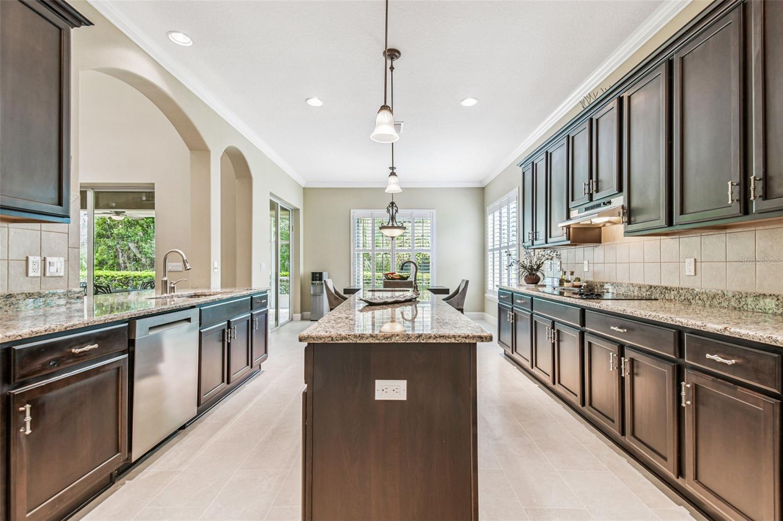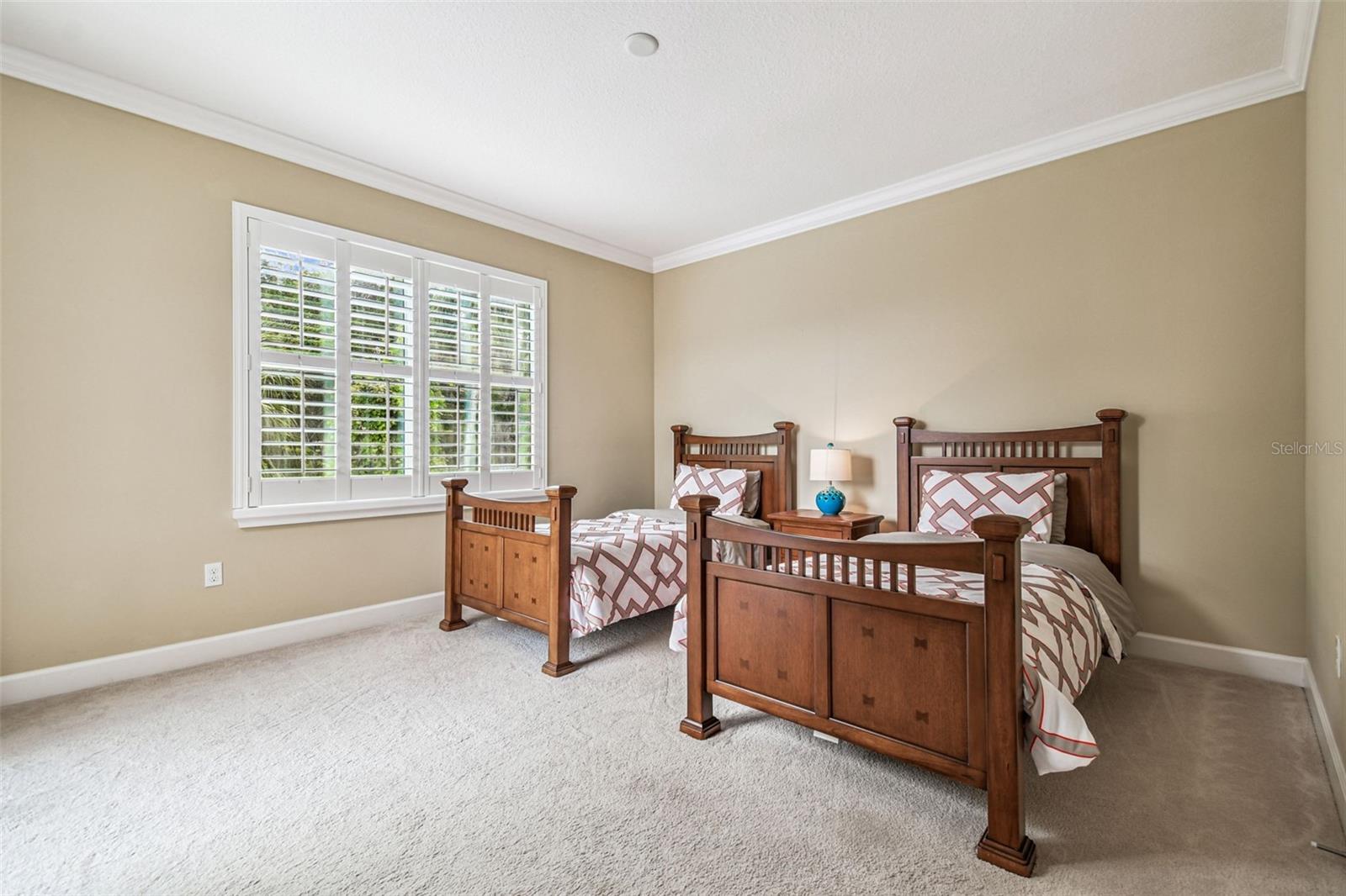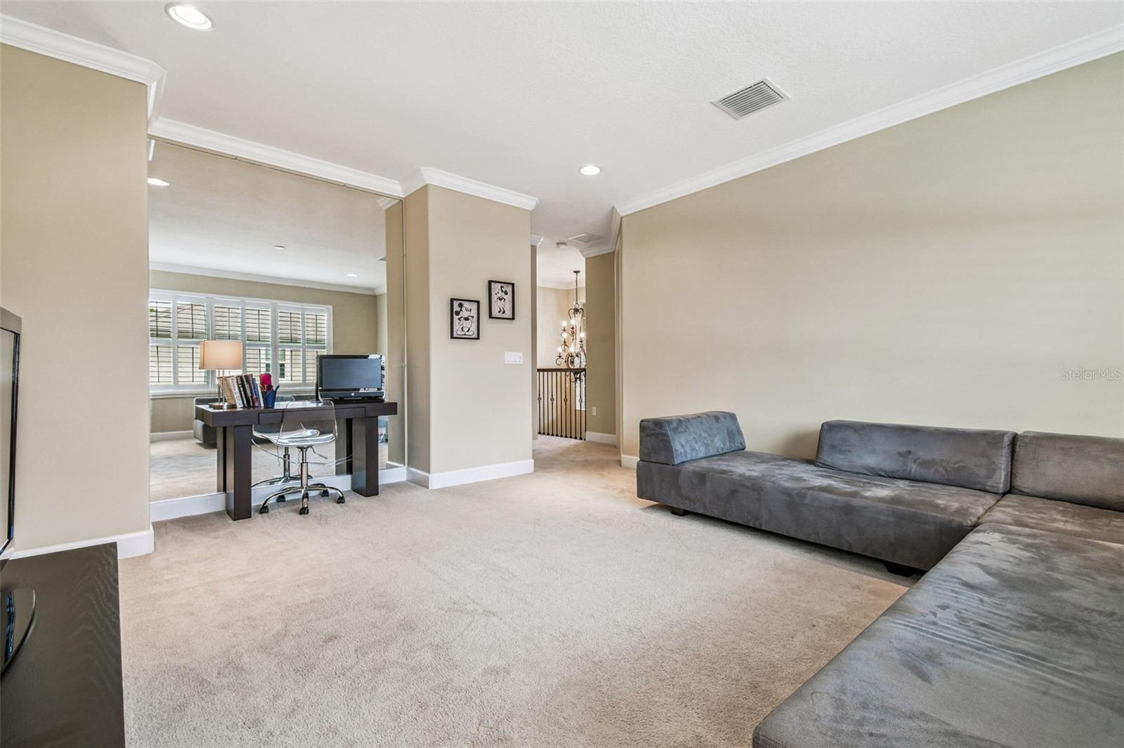 Seven Oaks. Gorgeous cul-de-sac home on magnificent conservation lot in gated Watermark, Seven Oaks most prestigious village. This 4 bedroom, 3 ½ bath, 3 car split garage residence also has a loft, theater room, bonus room and an oversized, covered and screened lanai. The soaring ceilings provide for a very open feeling. The large kitchen with an island has upgraded stainless steel appliances, eat in area, walk-in pantry, overlooking the huge family room. The oversized first floor primary suite has views of conservation, dual sinks, walk-in closet, shower and separate tub. The family room is open to the second floor providing an abundance of natural light, and has two oversized bedrooms, one with access to large balcony, a bath with double sinks, a loft, theater and large bonus room. This home has many upgrades, including but not limited to guest bedroom on first floor, extensive wood floors, extensive plantation shutters, upgraded tile, large dining room & living room combination, screened travertine lanai with a half bath, split garages, sprinkler system, alarm system, gutters, acrylic coated garage floors, and a stately entrance with a front porch.