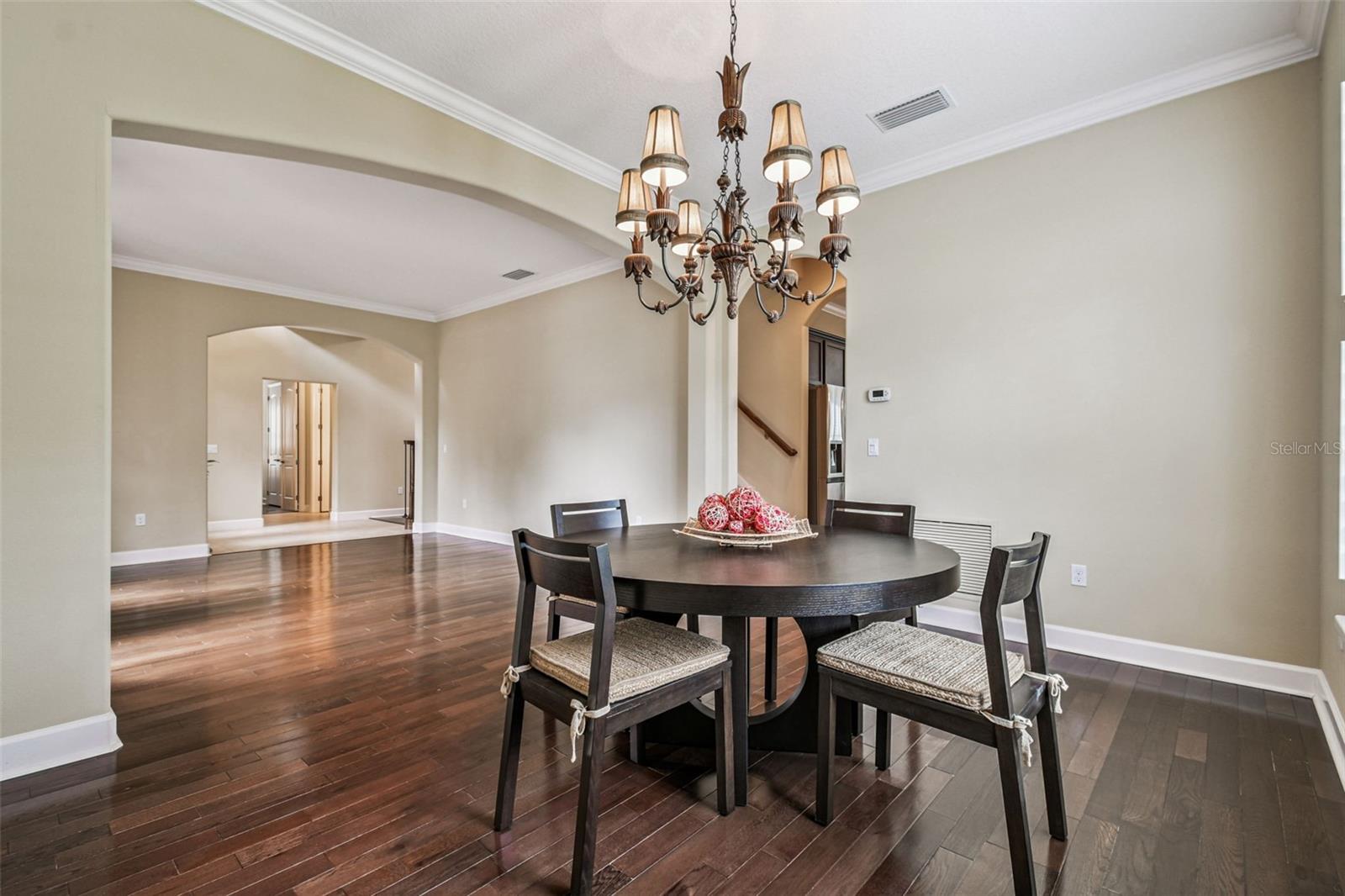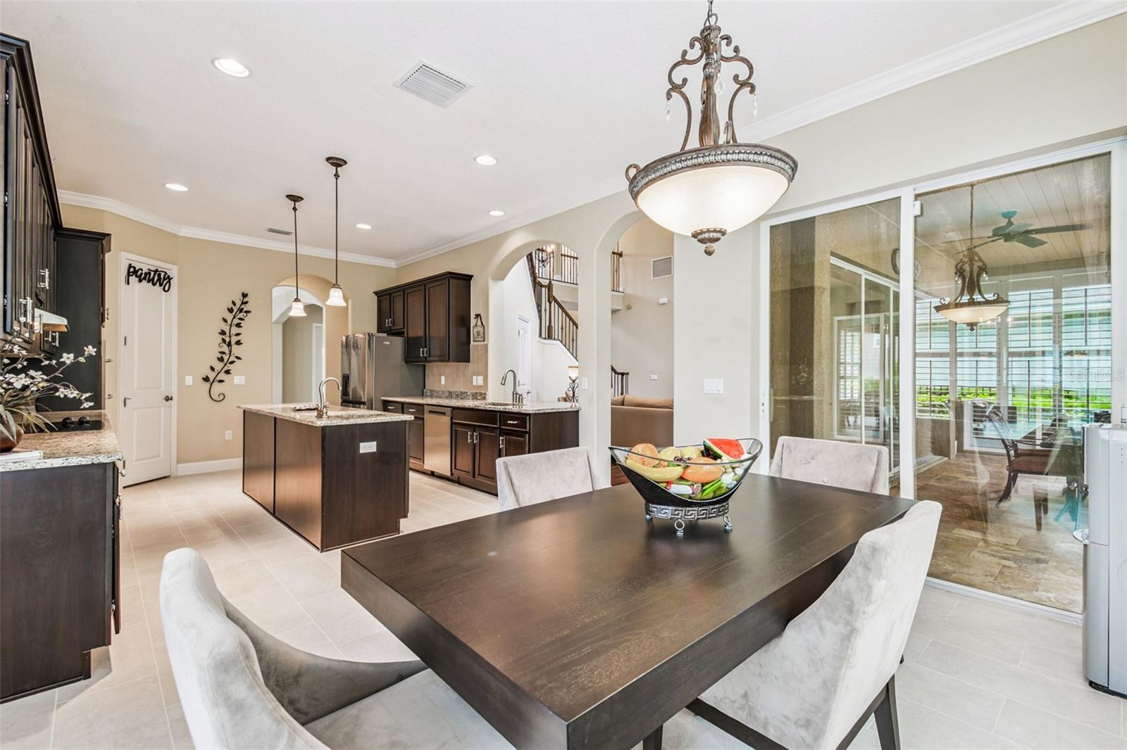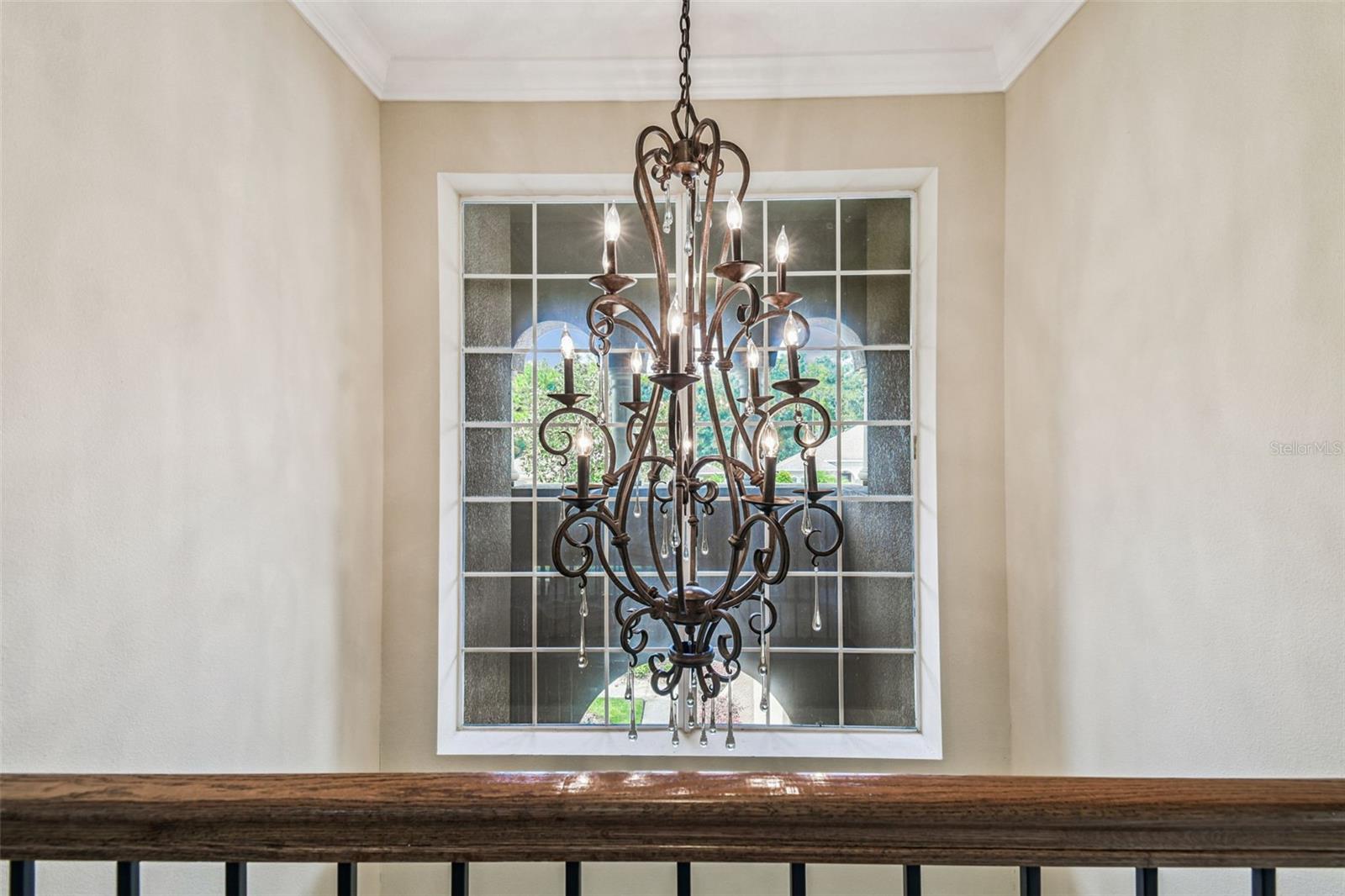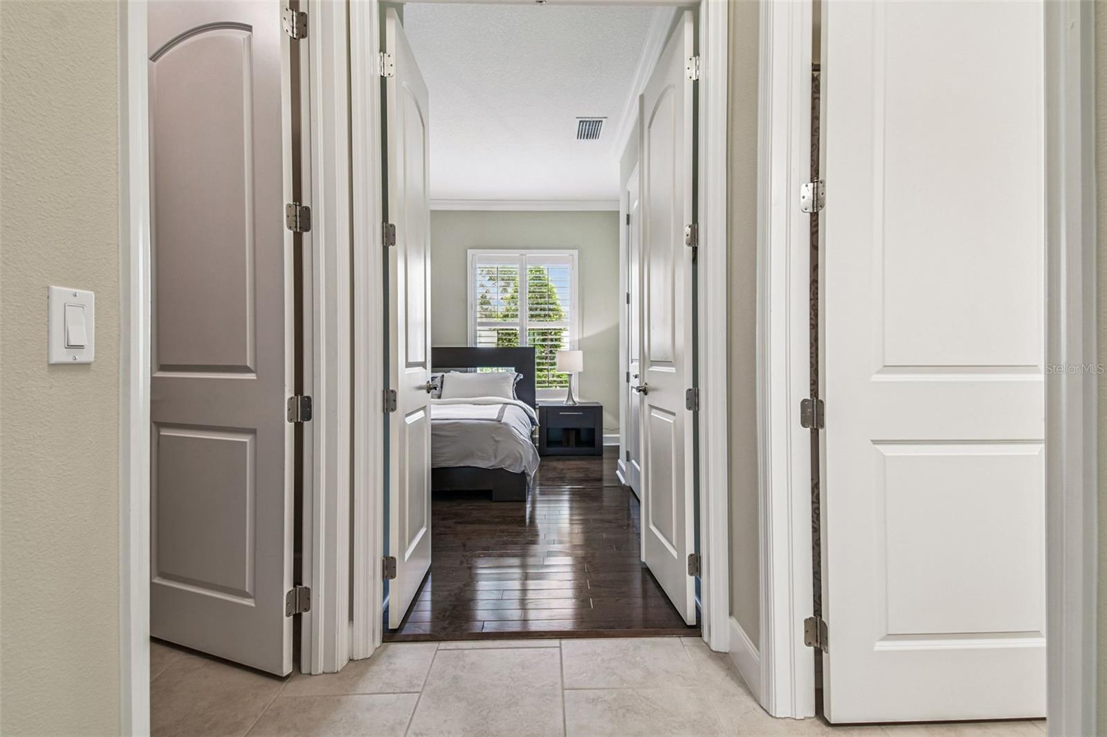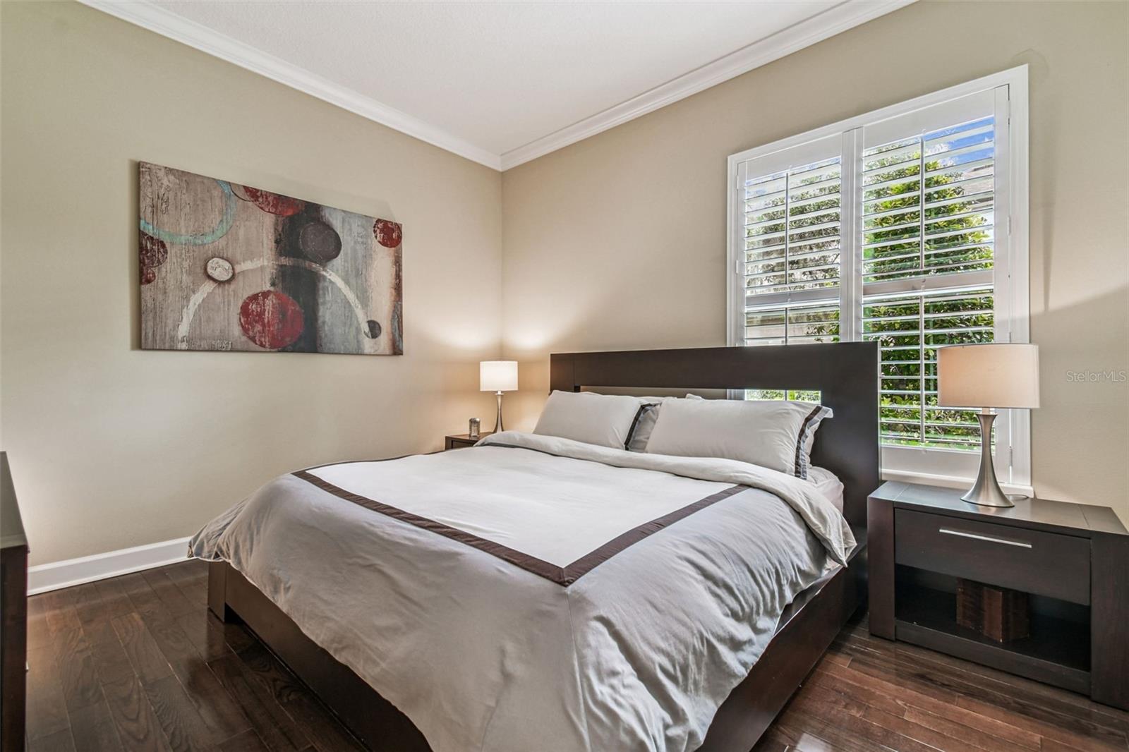 Seven Oaks. Gorgeous cul-de-sac home on magnificent conservation lot in gated Watermark, Seven Oaks most prestigious village. This 4 bedroom, 3 ½ bath, 3 car split garage residence also has a loft, theater room, bonus room and an oversized, covered and screened lanai. The soaring ceilings provide for a very open feeling. The large kitchen with an island has upgraded stainless steel appliances, eat in area, walk-in pantry, overlooking the huge family room. The oversized first floor primary suite has views of conservation, dual sinks, walk-in closet, shower and separate tub. The family room is open to the second floor providing an abundance of natural light, and has two oversized bedrooms, one with access to large balcony, a bath with double sinks, a loft, theater and large bonus room. This home has many upgrades, including but not limited to guest bedroom on first floor, extensive wood floors, extensive plantation shutters, upgraded tile, large dining room & living room combination, screened travertine lanai with a half bath, split garages, sprinkler system, alarm system, gutters, acrylic coated garage floors, and a stately entrance with a front porch.