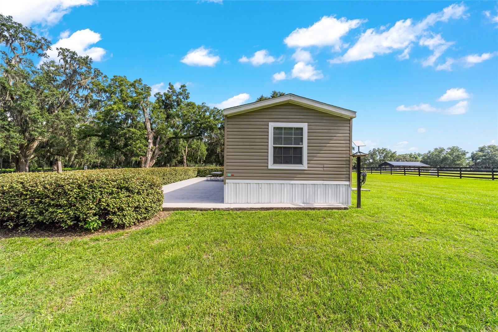 Located on the far side of the estate is a charming 1-bedroom, 1-bath guest cottage—perfect for extended family, staff, or guests. This 16’ x 40’ modular home features an open-concept living space, full kitchen, and private patio surrounded by manicured hedges, as well as its own gated entrance for privacy and independence.