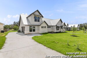 BUILDER FLEX-CASH INCENTIVE AVAILABLE! Welcome to this beautifully crafted new build by Macaw Custom Homes, nestled in one of Wimberley's most sought-after gated communities. Thoughtfully designed with versatility and elegance in mind, this spacious home perfectly suits growing families and avid entertainers alike. Enjoy the convenience of single-level living with a smartly laid-out main floor featuring three generously sized bedrooms, three and a half bathrooms, and a private study. Upstairs, a secluded fourth bedroom with a full ensuite bath offers the ideal retreat for guests or multigenerational living. The heart of the home is the chef-inspired kitchen, adorned with Quartz countertops, a sleek modern backsplash, and premium GE Cafe appliances. Whether you're hosting a dinner party or enjoying a casual meal, you'll appreciate the choice of a formal dining room, cozy breakfast nook, or expansive island seating. The bathrooms showcase exquisite tilework, abundant counter space, and well-planned storage-all curated for both style and function. The oversized side-entry garage adds to the home's practicality, offering ample parking, storage, and built-in EV charging capability. Craftsmanship and energy efficiency are at the forefront with features such as foam insulation, black vinyl windows, and a standing seam metal roof-hallmarks of Macaw Custom Homes' exceptional quality. Wimberley Springs offers a prime location near schools, shopping, grocery stores, and scenic hiking trails. Residents also enjoy easy access to the charming Wimberley Square. With lush landscaping, mature trees, and breathtaking Hill Country views, this community truly has it all. Don't miss your chance to own this extraordinary home-schedule your private tour today!