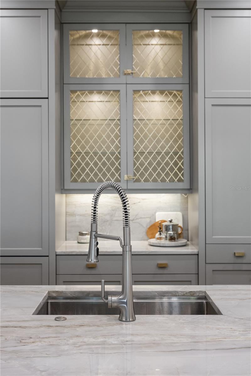 Step inside to discover an open, light-filled floor plan with new luxury vinyl flooring, custom lighting, and fresh paint inside and out. The chef’s kitchen has been completely redesigned with custom cabinetry, top-of-the-line Miele appliances, and a striking quartzite island and backsplash, creating a true centerpiece for entertaining. The adjacent family room and bar area feature bespoke built-ins, offering both warmth and sophistication.
