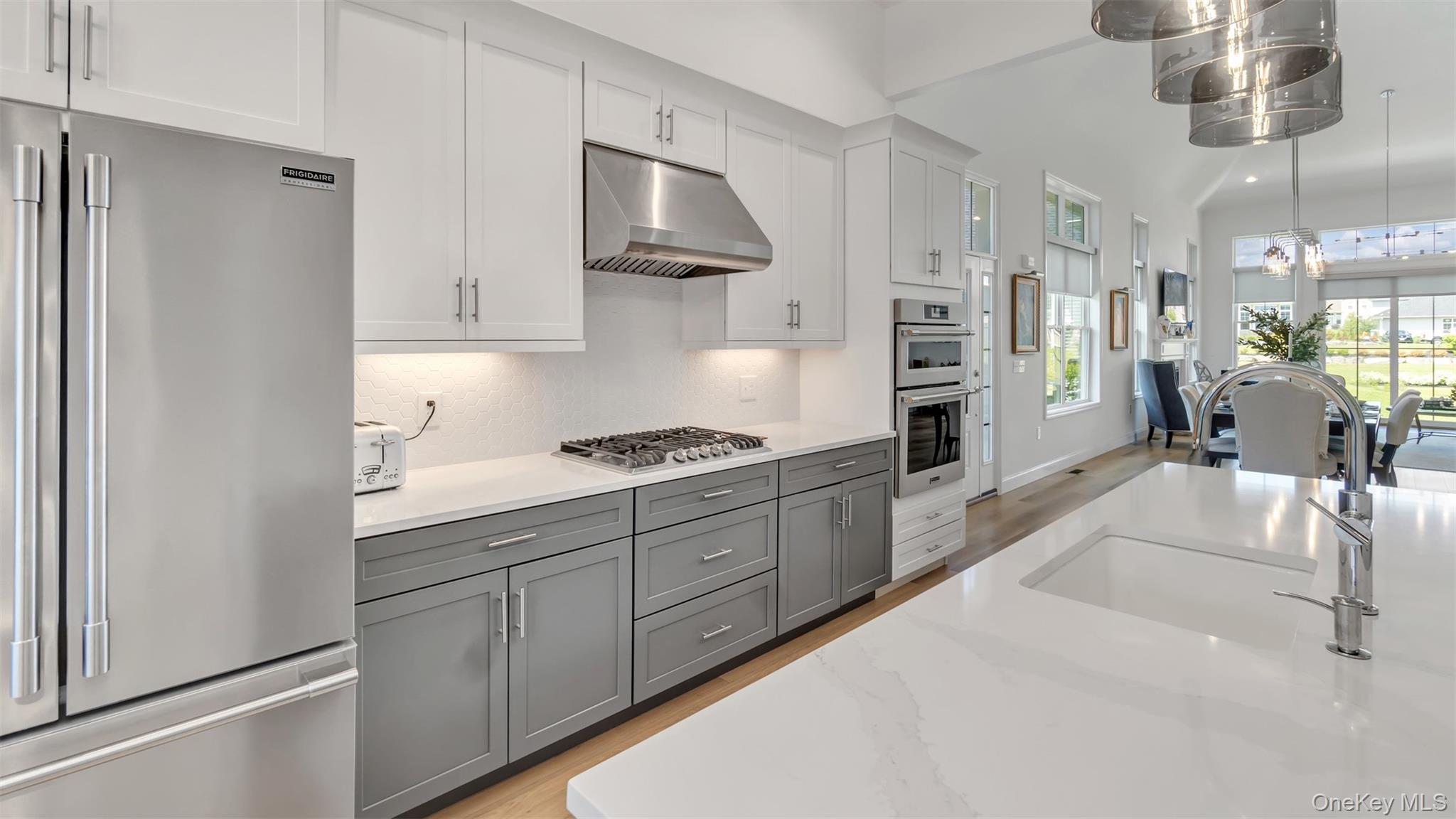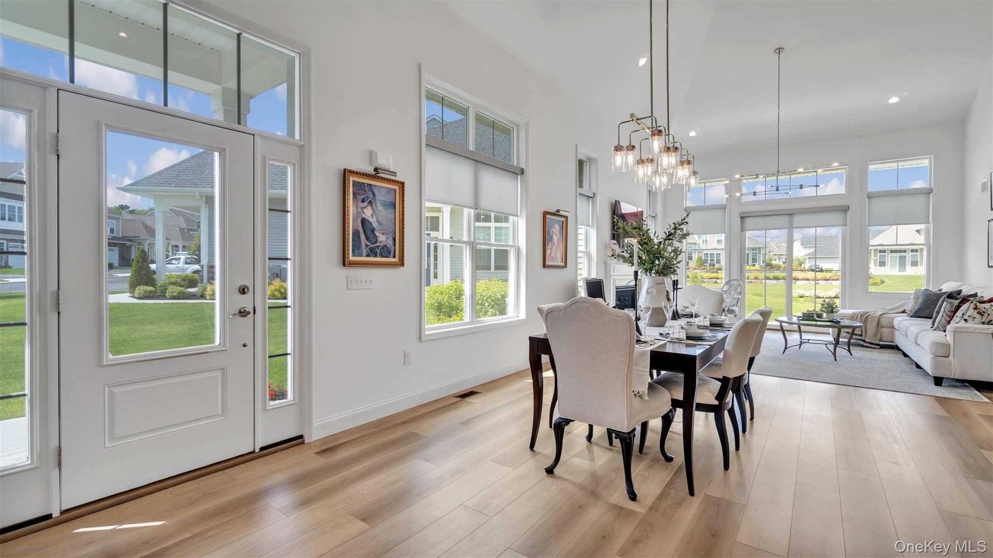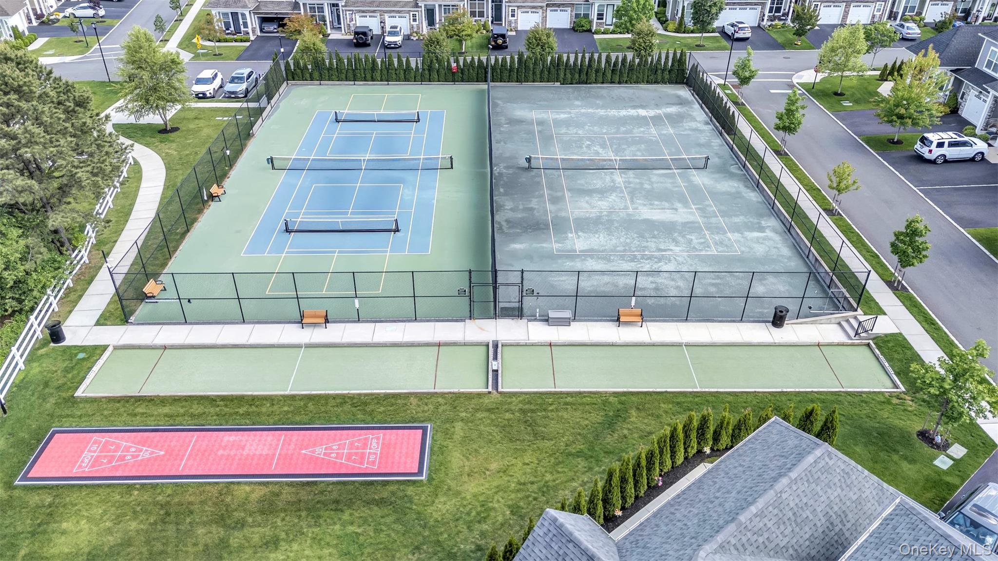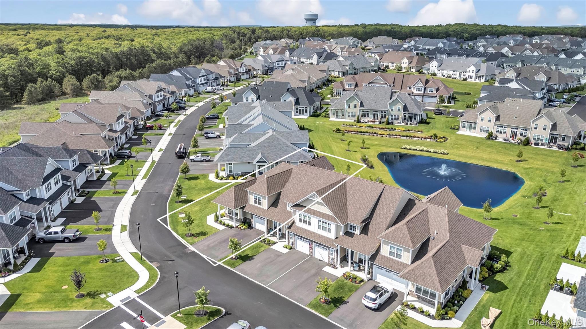 Pure Perfection and Sophistication await you from the moment you enter this Luxury, 3 Bed, 2 1/2 Bath, Elgin Model End Unit, in the gated, resort-style 55+ community of Country Pointe Meadows! Many upgrades have been made to this 1 year young Townhome to make it extra special and inviting. Every day here feels like you’re on a luxurious vacation, replete with an abundance of amenities and conveniences, including a state-of-the-art club house, with a fitness center, ballroom, an indoor and outdoor bar, two outdoor heated swimming pools, tennis courts, pickle ball, bocce and shuffleboard, to name a few! This Townhome has been lightly lived in, and meets all of today’s discriminating tastes and desires, including an open-concept floor plan with light and bright rooms. The gracious Dining Area and sumptuous Living Room feature soaring ceiling heights, adding to the elegance of the home, and feature a wall of windows and glass sliders leading to the oversized patio, with endless, center views of the Pond and fountain! The windows in the Living Room feature motorized tinted UV shades, as well as a tinted Transom. The Living Room also has a gas fireplace, which is ideal for those chilly fall or winter evenings! The Kitchen is a Chef’s delight, featuring custom cabinetry, Quartz countertops, a large Quartz Center Island with a Kohler porcelain, cast iron farm sink, Frigidaire Professional Series stainless appliances, including a cook-top stove and oven/microwave/air fryer combination. The Townhome has abundant recessed, energy-efficient, LED lighting throughout, as well as gorgeous, designer lighting fixtures. The floors throughout the Residence are Rigid Core luxury wide-plank flooring, which is extremely durable, water and scratch proof, as well as beautiful! Every design detail was thoughtfully planned and implemented and the results are nothing short of stunning! The Primary ensuite on the First Floor boasts amazing Pond and fountain views, which add a level of tranquility and beauty that are awe-inspiring! The Bathroom features a large shower with porcelain tile and glass doors, double-sinks, and lovely, soft lighting. The double, custom closets are ideal for each individual’s wardrobe, and even contain built-in jewelry boxes. On the second floor, there is a loft at the top of the landing, which is well-suited as an office or a sitting area, and the two guest bedrooms are on either side of the loft. They are both generously sized and share a nicely appointed Full Bath with a tub. The Basement is very spacious at 1,465 Square feet, with high ceilings, and is rough-plumbed for a Full Bath, if so desired. Use your imagination to create recreational and/or additional living space there. This Townhome also has a separate powder room as well as a separate laundry room on the First floor. The 1-car Garage has an epoxy floor and electricity, and the driveway accommodates two additional vehicles. Visit the newly-built pergola almost directly opposite the driveway, for some added serenity and enjoyment. Country Pointe Meadows is part of The Boulevard, a master-planned community that will offer a mix of residences, offices, retail shops, dining establishments, (Starbucks included!), medical facilities, open spaces and parks. Simply put, you will have everything here at your fingertips, and so much more! Easy travel to/from NYC and other areas of Long Island. Live the lifestyle you so richly deserve!